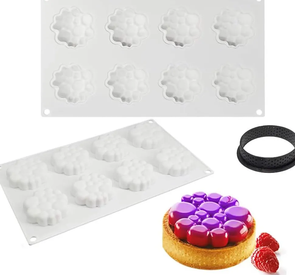 En silicone 100% alimentaire de haute qualité. Approuvé par la FDA et sans BPA.Convient pour la fabrication de gâteaux mousse, de gelées, de plats préparés, de chocolat, de glaçons, etc. Cadeau idéal pour les amateurs de pâtisserie.Sans danger à des températures comprises entre -40 et 230 degrés Celsius. Ils sont adaptés pour mettre au micro-ondes, congélateur et lave-vaisselle.La flexibilité du silicone permet de plier la casserole sans l’endommager et se replie simplement dans sa forme initiale.
