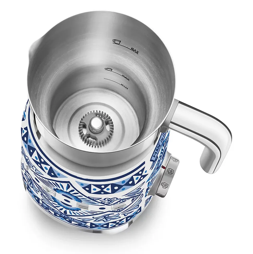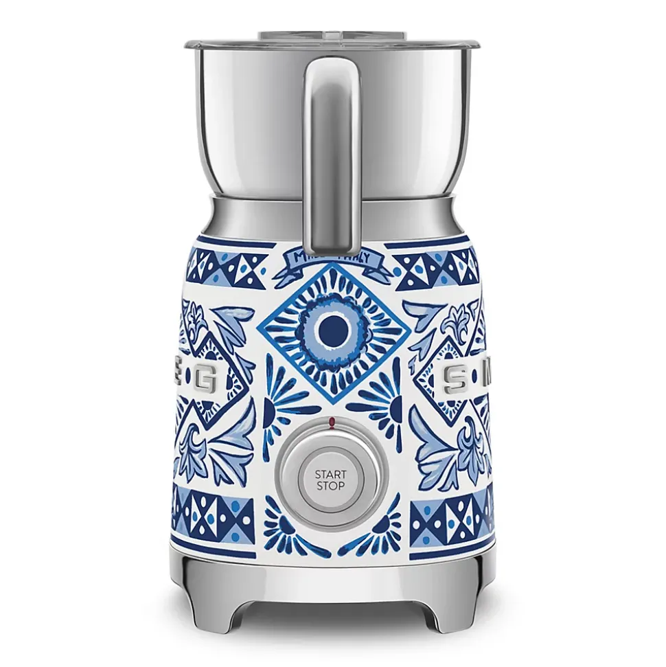 Mousseur à lait 500w 0.6l blu mediterraneo Smeg – Chocolatière MFF01DGBEU de Smeg.Système d’induction pour un chauffage uniforme et une préparation optimale du lait à tout moment.Le bouton multifonction permet de sélectionner jusqu’à 6 programmes prédéfinis et une fonction manuelle.Carafe en acier inoxydable lavable au lave-vaisselle.Le mousseur à lait Smeg vous permet d’obtenir une mousse légère ou dense avec du lait chaud et froid, pour créer une variété de recettes. – Type : Chocolatière & mousseur de lait à induction.Famille de produits : Mousseur à lait.Esthétique : Années 50.Puissance : 500 W.Tension : 220-240 V.Fréquence : 50 / 60 Hz.Longueur du câble d’alimentation : 1 m.Type de commandes : Touches, Manette.Système à induction avec arrêt automatique : Oui.Carafe amovible : Oui.Bouchon doseur : Oui.Capacité de la carafe pour chauffer le lait et le chocolat : 600 ml / 2,5 tasses.Capacité de la carafe pour monter le lait : 250 ml / 1 tasse.Base antidérapante : Oui.Range-cordon intégré : Oui.Matériau de la poignée : Plastique.Matériau des touches : Plastique.Fonction chocolat chaud : Oui.Fonction lait chaud : Oui.Fonction lait chaud avec mousse fine : Oui.Fonction lait chaud avec mousse épaisse : Oui.Fonction lait froid avec mousse fine : Oui.Fonction lait froid avec mousse épaisse : Oui.Fonction manuelle lait froid : Oui.Fonction manuelle : Oui.Matériau du corps : Inox.Matériau du couvercle : Plastique sans BPA.Matériau du bouchon doseur : Plastique sans BPA.Matériau de la carafe : Inox.Couleur de la poignée : Intérieur gris / Extérieur Chromé.Matériau de la poignée : Plastique.Couleur du col de jonction : Chromé brillant.Matériau du col de jonction : Plastique.Couleur de la base : Chromé brillant.Matériau de la base : Plastique.Type de logo : Appliqué.Couleur