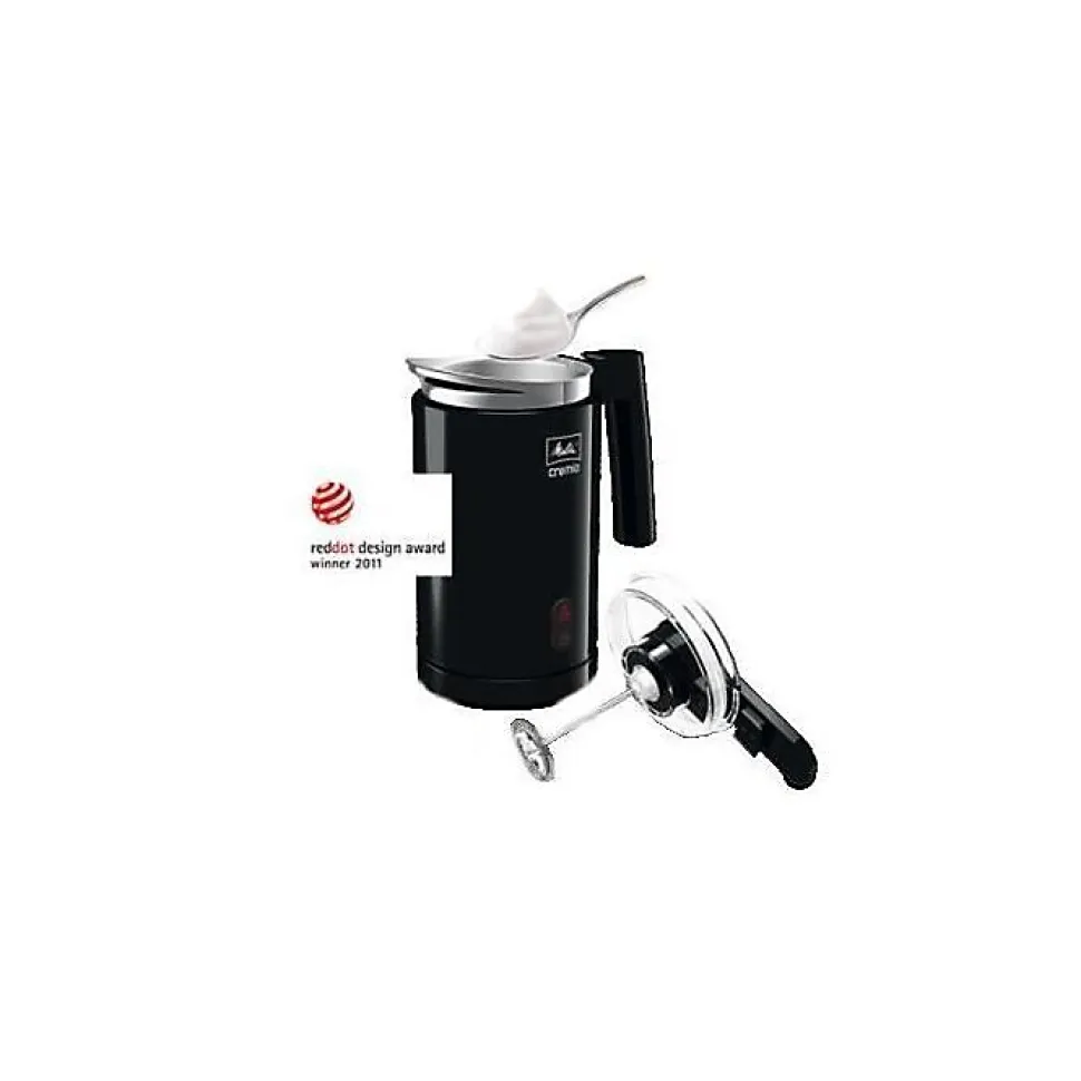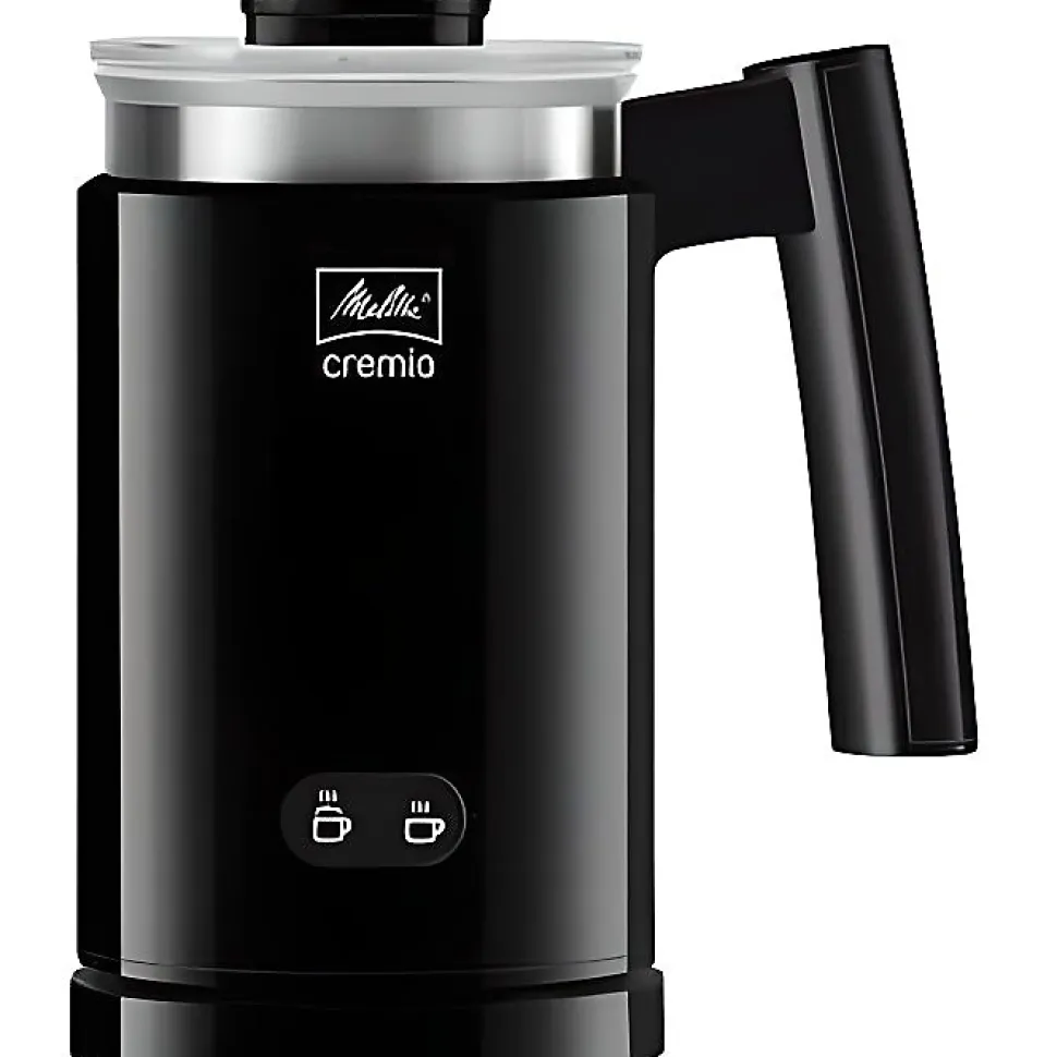 Mousseur à lait MELITTA Cremio II 450 W : préparez rapidement une mousse dense et onctueuse, chaude ou froide, idéale pour latte macchiato et cappuccino. Capacité mousse 150 ml, capacité totale 250 ml. Corps cylindrique noir au design primé (Red Dot) avec revêtement antiadhésif facilitant le nettoyage. Fouet et couvercle compatibles lave-vaisselle. Deux boutons tactiles (mousse / lait chaud), témoin lumineux et arrêt automatique pour la sécurité. Socle rotatif détachable 360° pour une utilisation aisée et poignée ergonomique. Conforme DEKRA GS. Garantie fabricant 2 ans.