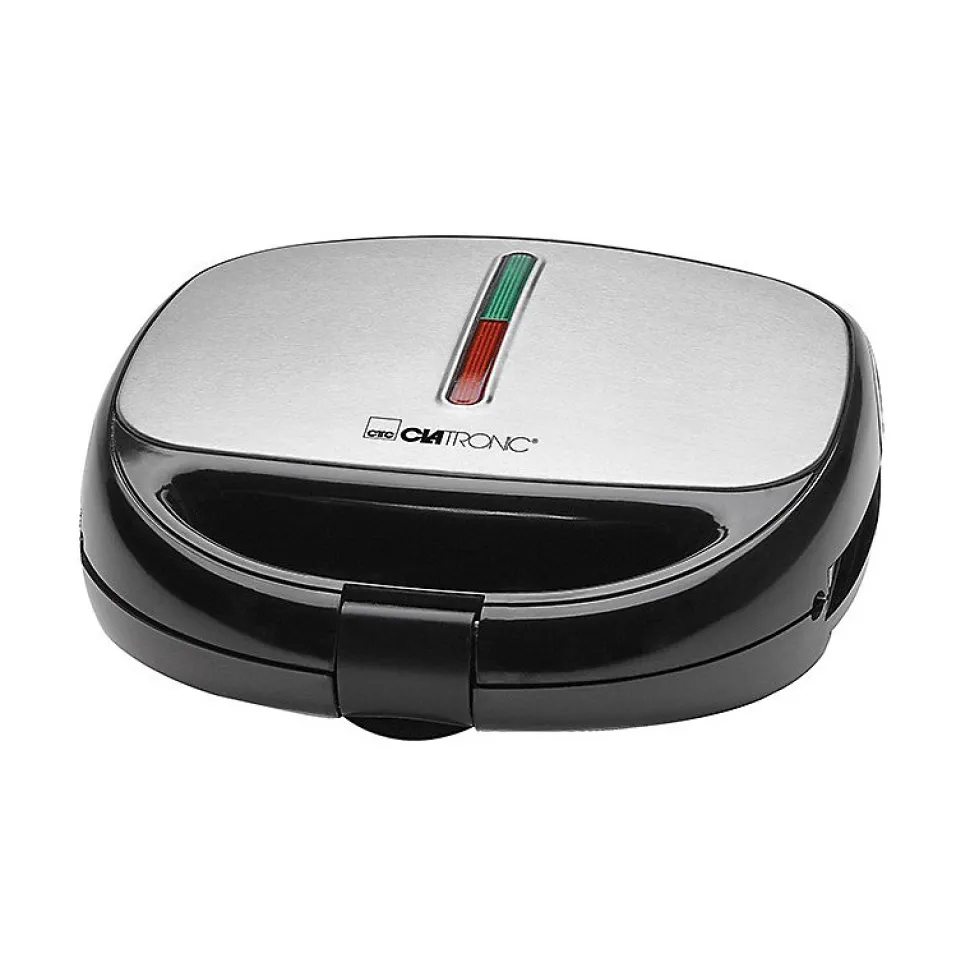 Grilleur de sandwichs, gaufrier et gril de contactUtilisation polyvalente grâce à trois plaques amovibles différentes (plaques à sandwich, à gaufre et à gril),par exemple, pour les gaufres belges et les savoureuses variantes de sandwichs, ainsi que pour le gril de contact rapide à double face.Insert en acier inoxydablePlaques de cuisson à revêtement anti-adhésif et interchangeablesPoignée isolée de la chaleur2 témoins lumineux pour l’alimentation et le chauffage (témoins de cuisson)Support sûr grâce aux pieds caoutchoutésSystème de verrouillageProtection contre la surchauffe220-240 V, 50/60 Hz, 800 W