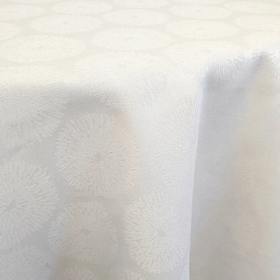 - Collection élégante et anti tâches en damassée 100% coton avec ces motifs en rond effet organique tissés jacquard ton sur ton.