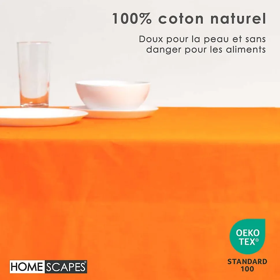 Nappe rectangulaire en 100% coton – orange – 137 x 178 cm – HOMESCAPES – Lavable en machine