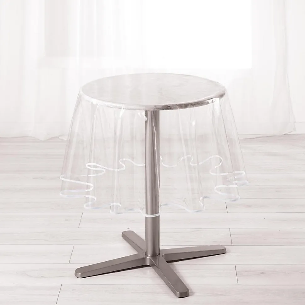 Sobre et élégante, cette nappe ronde transparente de 180 cm de diamètre s’adaptera facilement à la déco de votre table. Le biais coloré qui orne cette nappe, apportera une touche d’originalité. Imperméable, celle-ci permet la mise en place de 8/10 couverts. Cette nappe ronde se nettoie facilement à l’aide d’un chiffon humide. Ce même modèle existe en nappe rectangulaire. Caractéristiques : Composition : 100% PVC Biais: 100% Polyester Dimension : diamètre 180 cm Coloris : transparent Finition : biais anthracite et taupe Vendue à l’unité