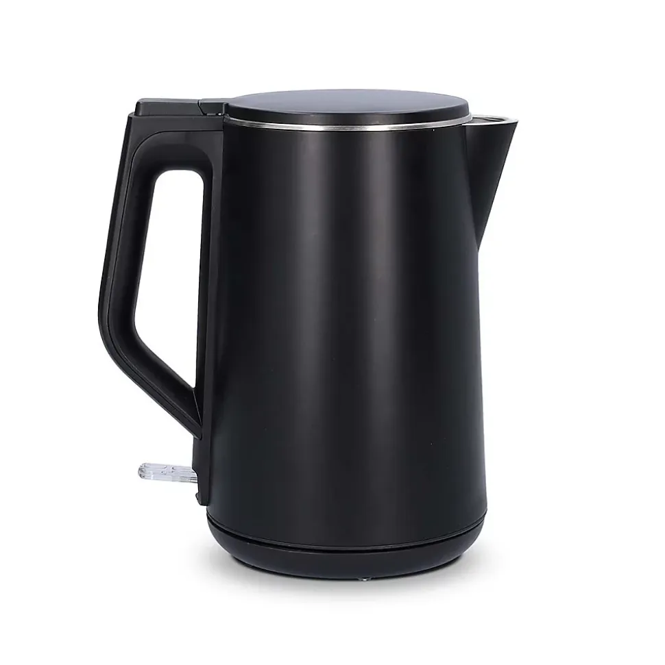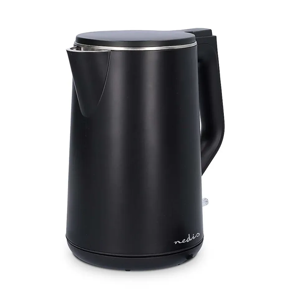 Cette bouilloire élégante a une capacité de 1.5 litre et grâce à la puissance de 2200 W. vous aurez votre thé prêt en un rien de temps. La finition noire fait de cette bouilloire un objet élégant. durable et facile à nettoyer. qui s’intégrera parfaitement dans votre cuisine. La bouilloire a un boîtier à double paroi qui maintient la température de l’eau plus longtemps.Grâce à sa base à 360°. la bouilloire convient aussi bien aux gauchers qu’aux droitiers. La bouilloire est détachable de la base. ce qui facilite le remplissage et le versement de l’eau. Le grand couvercle et l’élément chauffant dissimulé facilitent le nettoyage.Lorsque l’eau bout. la bouilloire s’arrête automatiquement et dispose d’une protection contre l’ébullition.Les pieds antidérapants garantissent la stabilité et la sécurité de la bouilloire. Le cordon peut être enroulé autour de la base afin de placer facilement la bouilloire dans votre cuisine ou sur votre plan de travail.1.5 lPlastiqueNoirRotatif à 360 degrésÉlément chauffant dissimuléContrôleur StrixProtection contre l’ébullition