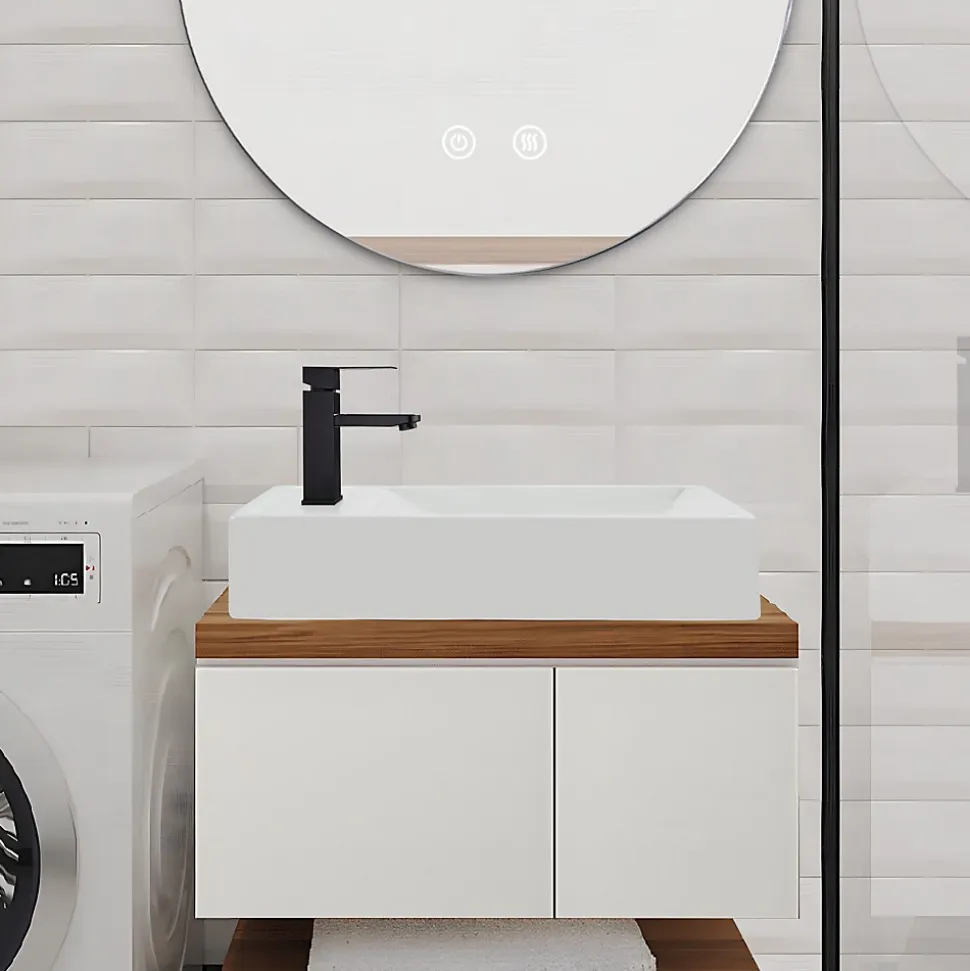 Design élégant : la transition légèrement incurvée évite le risque de heurter un mur à angle droit et augmente la sécurité d’utilisation, ce qui le rend particulièrement adapté aux familles avec enfants ou aux personnes âgées. La profondeur du lavabo mural est calculée en fonction de l’espace de vie, réduisant efficacement les éclaboussures d’eau pendant le lavage et gardant le plan de travail sec et propre. Sa forme carrée classique s’adapte aux styles modernes, rétro, minimalistes et autres et s’intègre facilement dans les salles de bains, les cuisines ou les espaces commerciaux (40 x 22 x 10 cm). Émail anti-couleur haute résistance : la cuisson à une température supérieure à 1280 °C compacte les molécules de l’émail et les rend résistantes à la pénétration de l’eau, prévenant ainsi les problèmes de jaunissement et de décoloration. Grâce à un traitement de surface spécial par nano-revêtement, il est extrêmement résistant aux rayures et à l’usure. Même en cas d’utilisation intensive, il reste impeccable et facile d’entretien. Facile à nettoyer : Les lignes courbes et l’effet lotus permettent à l’eau et à la saleté de perler vers le haut et vers le bas. Les taches de calcaire et les résidus de savon adhèrent peu, ce qui réduit le temps de nettoyage et maintient votre salle de bain toujours propre. Installation flexible : Pose libre, comme vasque élégante ou intégrée au meuble sous-vasque. Adaptée aux petites salles de bain ou aux toilettes invités, la vasque à poser se fixe directement après la découpe. Les diamètres d’ouverture sont conformes aux normes en vigueur et la notice claire permet une installation rapide (4,5 cm). Convient aux salles de bain, cuisines, hôtels et appartements. Contenu de la livraison : 1 vasque. Veuillez noter que la robinetterie, les bondes et autres accessoires ne sont pas inclus et peuvent être achetés séparément. Trouvez la robinetterie ou l’éclairage miroir adapté dans notre boutique. Contactez-nous pour un conseil personnalisé