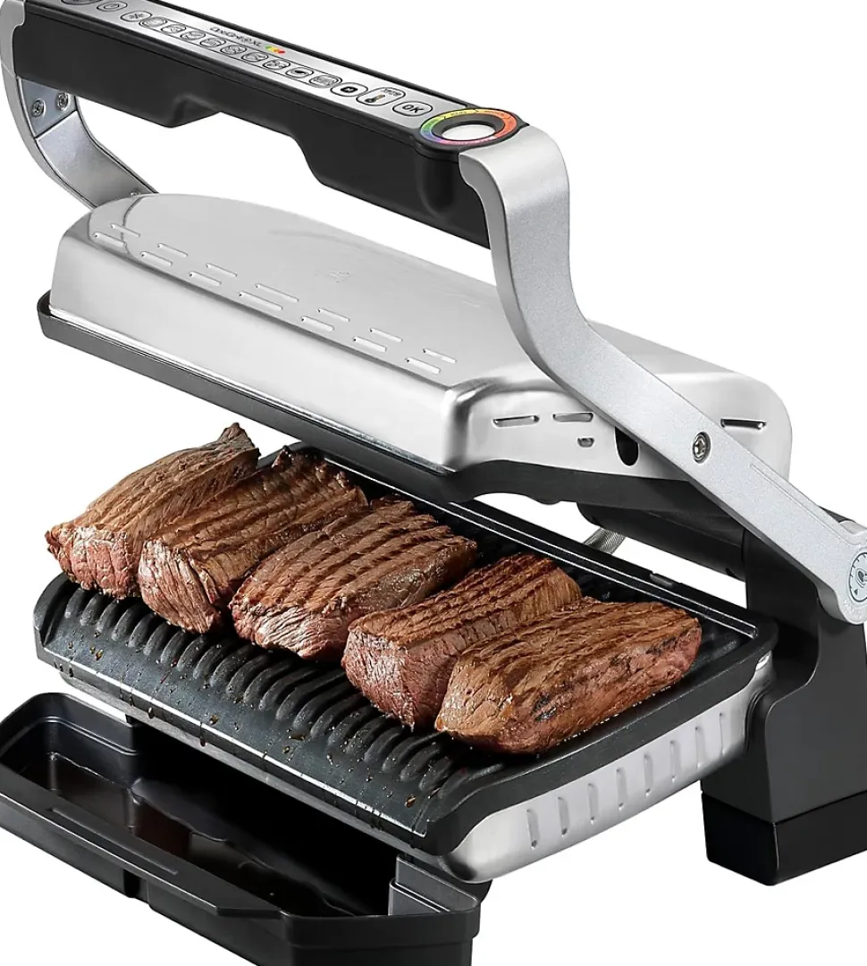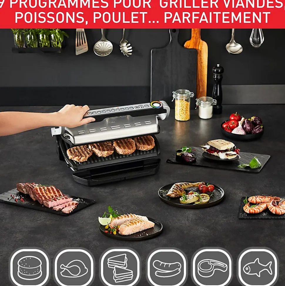 Découvrez une cuisson parfaite à chaque utilisation grâce à l’OptiGrill+ XL. Ce gril intelligent mesure automatiquement l’épaisseur des aliments et adapte le temps de cuisson selon le niveau choisi, sans besoin de sonde. Son indicateur lumineux à code couleur vous guide facilement pour obtenir une viande saignante, à point ou bien cuite. Doté de 9 programmes automatiques, il permet de griller viandes rouges, volailles, poissons, hamburgers, paninis et bien plus encore, avec des résultats précis et homogènes. Sa surface XL de 800 cm² convient jusqu’à 8 personnes. Grâce à l’accessoire Snacks & Pâtisserie inclus, préparez pizzas, gratins, gâteaux ou nuggets en toute simplicité. Les plaques et le bac à jus compatibles lave-vaisselle assurent un nettoyage rapide. Élégant et performant, il allie technologie, polyvalence et grande capacité pour toute la famille.