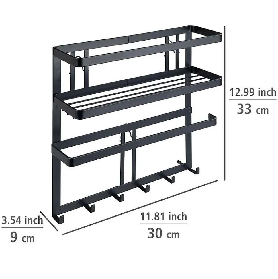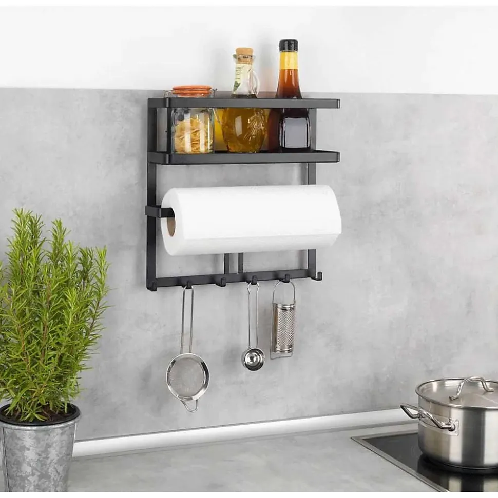 Optez pour une combinaison parfaite d’esthétique et de fonctionnalité avec notre étagère multifonctionnelle en métal noir. Conçue pour s’intégrer harmonieusement dans les cuisines modernes, cette étagère est un ajout indispensable pour ceux qui recherchent un espace de rangement optimisé et efficace. L’étagère est équipée d’une étagère principale, d’un porte-rouleau et d’une tringle munie de 6 crochets, offrant ainsi un espace de rangement polyvalent pour vos ustensiles de cuisine, essuie-tout et autres accessoires. Chaque unité est livrée avec des vis et des chevilles pour un montage sécurisé. FICHE TECHNIQUE- Organiseur de cuisine mural- Matière : Métal – Couleur : Noir- Vis et chevilles fournis CARACTERISTIQUES TECHNIQUES- Dimensions : Longueur 30 cm X Largeur 9 cm X Hauteur 33 cm- Distance entre les trous de la corbeille : env. 20 cm- Poids : 1,2 kg