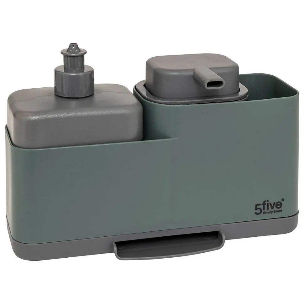 Organiseur évier « Néo » avec distributeur vertContenu : 1 porte éponge – 2 distributeurs de savon -Dimensions : L. 23 x P. 8.7 x H. 15.6 cmColoris : VertMarque : 5 five simply smart