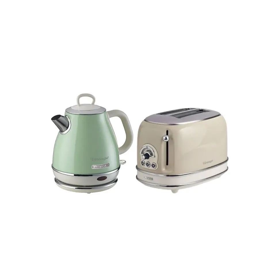 Description de la bouilloire :Grâce aux parois froides qui vous permettent de le porter facilement et de le positionner sur toute surface extérieure à la base, à la poignée ergonomique et au système d’arrêt automatique, cet accessoire devient un compagnon sûr et facile à utiliser, idéal pour vos moments de détente, seul ou entre amis.Caractéristiques:Puissance : 1630WCapacité: 1LSans fil avec base pivotante 360°Arrêt automatiqueParois froidesDim: 245x160x185Couleur: VERTDescription du grille-pain :Grille pain 2 fentes vintage (139 x 38 cm)Ejection automatique & tiroir ramasse- miettesFonctions décongélation, réchauffage et toastParfait pour griller de simples toasts ou des sandwichsThermostat 6 positions, parois froideFiable Durable Marque digne de confianceFonction de réchauffage OuiOption d’annulation OuiPuissance électrique 810 WattRangement du cordon OuiCouleur : BeigeMatériau : MétalLargeur : 19cmProfondeur : 30cmHauteur : 20cmPoids : 1.6 kgNombre de niveaux de dorage : 6Cool Touch Exterior : OuiPatins anti-dérapants : Oui