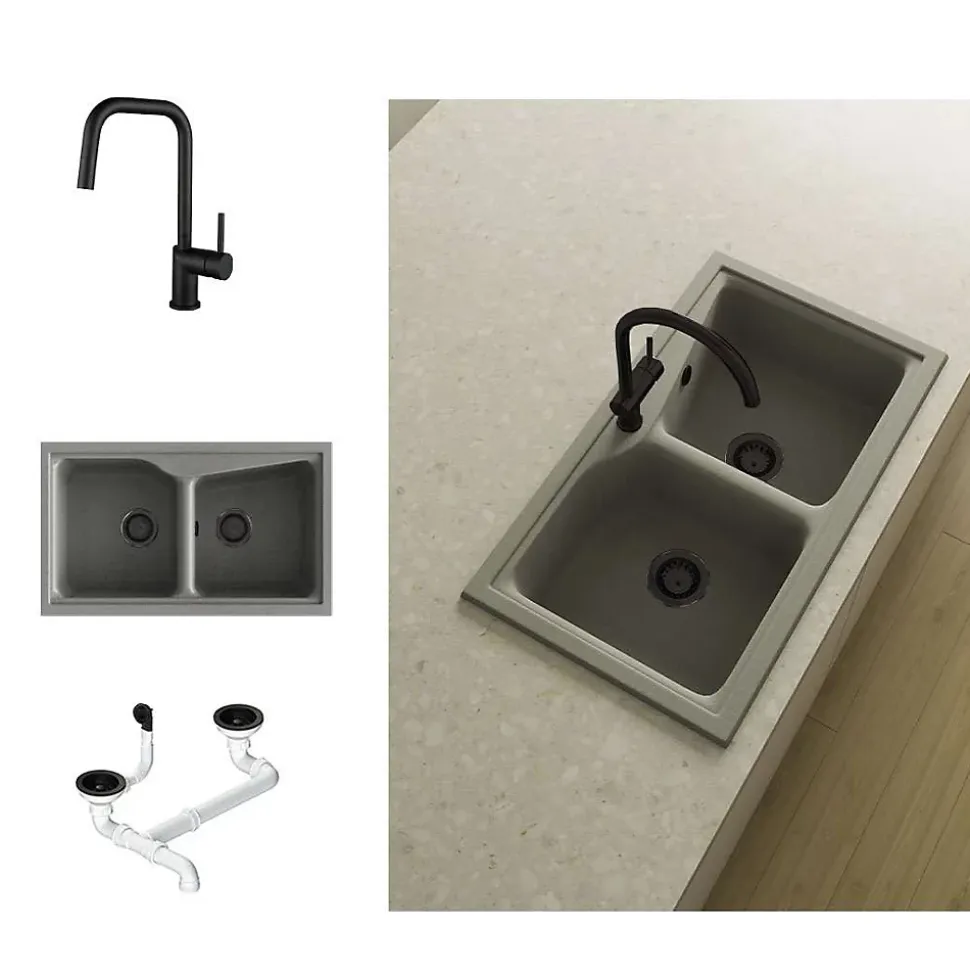 - Pack complet avec évier, mitigeur et bonde couleur noire