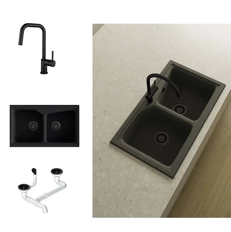- Pack complet avec évier, mitigeur et bonde couleur noire