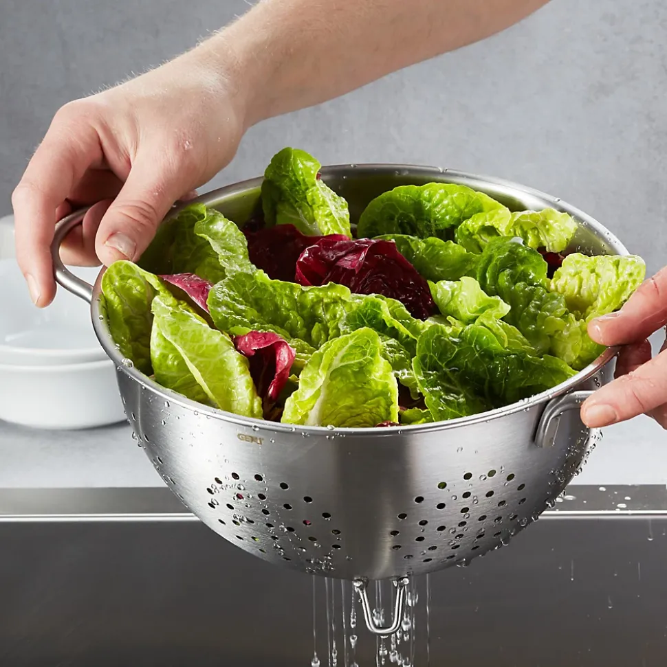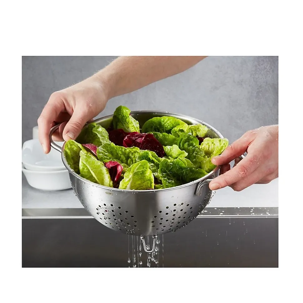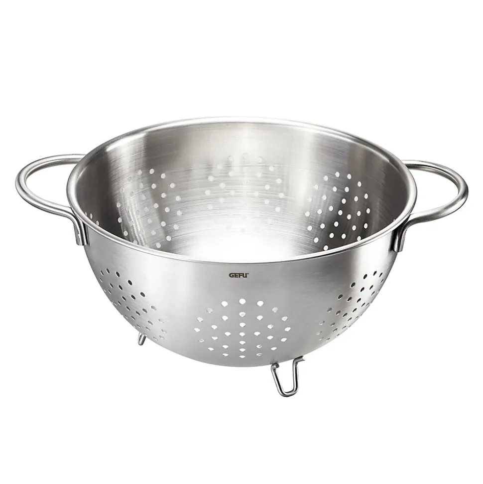 Fabriquée en acier inoxydable, la passoire Premio est un outil conçu pour faciliter le processus de filtration et d’égouttage dans votre cuisine.Avec sa taille généreuse de 27 cm de diamètre, cette passoire offre une capacité de filtrage optimale pour répondre à tous vos besoins de cuisson et de préparation culinaire.Cette maille fine est idéale pour égoutter les pâtes, rincer les légumes ou filtrer les sauces, garantissant ainsi des résultats culinaires impeccables.Collection : PASSOIRE Matière : Acier inoxydable (inox) Couleur : Argent / Métallique Longueur : 33.00 cm Largeur : 26.00 cm Hauteur : 14.00 cm Compatible Lave-vaisselle