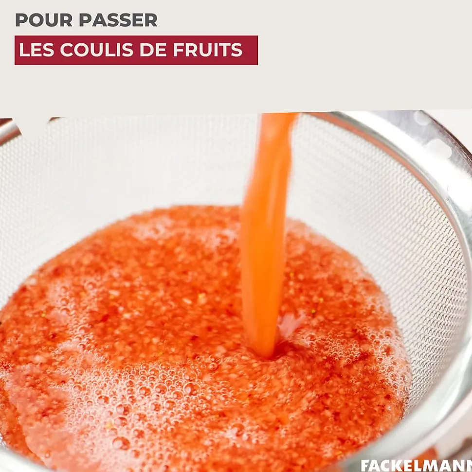 - DESCRIPTION : Passoire Chinois Fackelmann de 10,5 cm de diamètre en acier inoxydable, parfaite pour saupoudrer des ingrédients en poudre ou filtrer des liquides