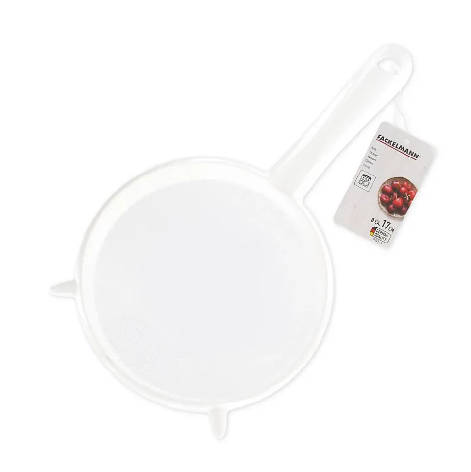 DESCRIPTION : Grande passoire de cuisine, classique et légère pour laver, égoutter et passer les légumes, ainsi que pour égoutter le riz ou les pâtes et, comme un tamis, pour saupoudrer les pâtisseries LE PETIT + : Facile à suspendre dans l’évier, le bol ou la casserole grâce à deux grandes pattes de support pratiques et à une longue poignéeCOMPOSITION : PlastiqueDIMENSIONS : 17 cmCONTENU : 1 passoire tamisLa passoire est un ustensile de cuisine indispensable pour réaliser de nombreuses recettes. Cette passoire tamis est particulièrement utile car elle est polyvalente et peut vous servir à la fois à égoutter vos féculents mais aussi à laver puis égoutter les légumes, fruits et salades.Ce qui rend la passoire vraiment utile est la possibilité de s’en servir comme tamis de cuisine ou de pâtisserie pour tamiser les poudres comme la farine, le sucre glace, la poudre d’amandes… Le cacao peut aussi être tamisé et saupoudré au-dessus d’une boisson chaude ou d’une pâtisserie pour décorer.Fackelmann France est une entreprise spécialisée dans la distribution d’ustensiles de cuisine et de pâtisserie ainsi que de moules à gâteaux et de plaques de cuisson. L’entreprise tente d’apporter une certaine facilité dans la façon de cuisiner de chacun grâce à ses ustensiles malins.Les ustensiles de cuisine de Fackelmann France sont proposés à tous les profils de cuisiniers pour une utilisation simple et quotidienne. Les fouets, spatules, louches, éplucheurs, planches à découper et bien d’autres sont à votre portée afin de préparer de délicieuses recettes toujours plus originales.