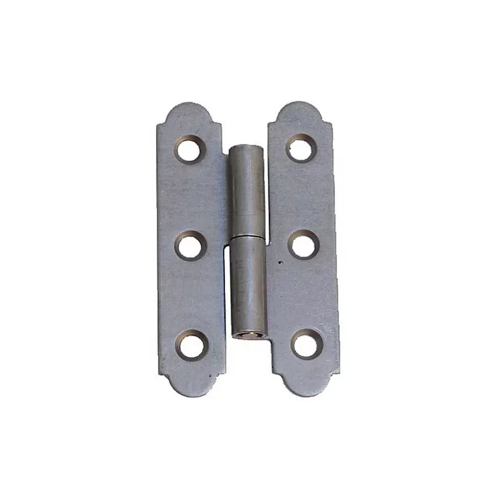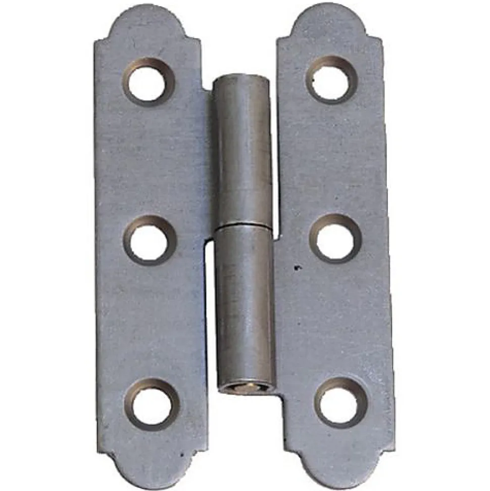 Paumelle espagnole à nœud roulé en acier brut, percée et fraisée pour un montage simple et précis. Dimensions 80 x 45 mm, épaisseur 1,5 mm, utilisable à droite ou à gauche, modèle MONIN 457150.