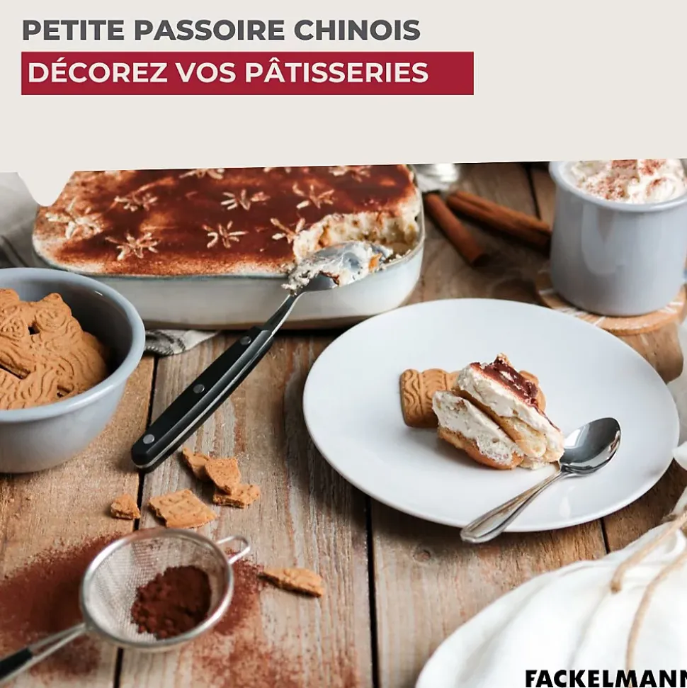 - LE PETIT + : Ce tamis est très précis pour tamiser du cacao ou du sucre glace sur une pâtisserie ou d’un café pour les décorer