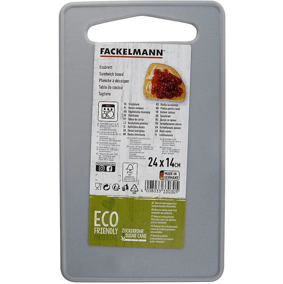 - DESCRIPTION : Fackelmann vous propose cette planche à découper rectangle grise en plastique biosourcé : cela signifie que ce plastique est majoritairement fabriqué à partir de matières premières renouvelables