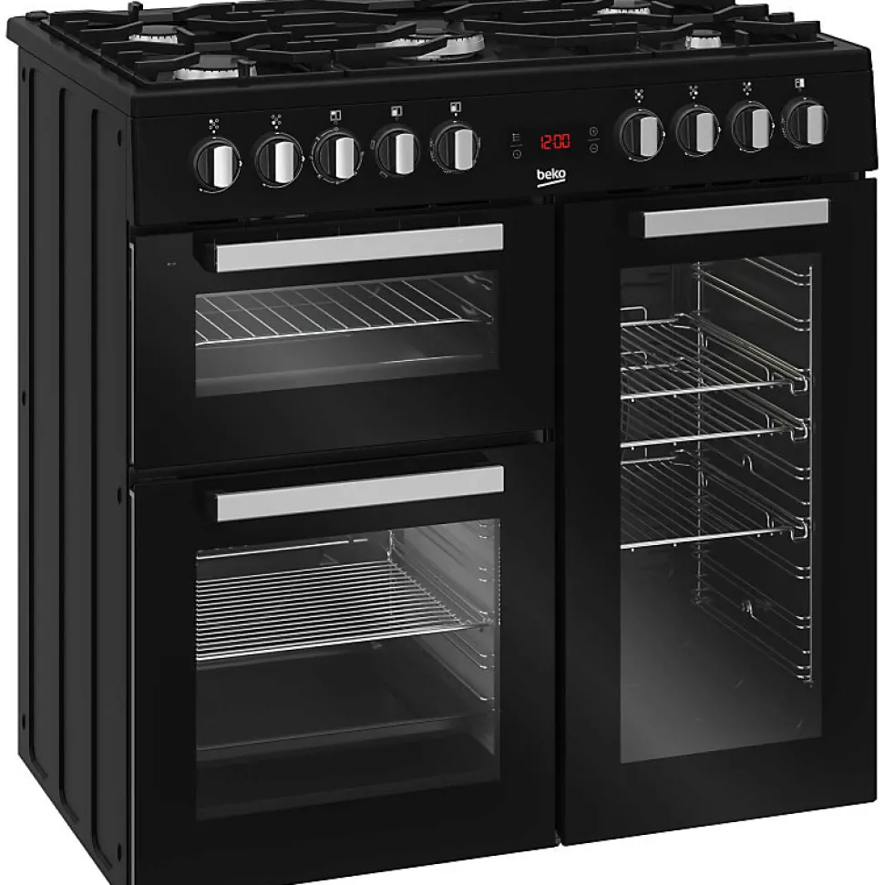 Piano de cuisson 170l 5 feux noir Beko – Piano de cuisson Beko PS235315DB comprenant une table de cuissn gaz et 3 fours électriques multifonctions. Multifour (3 fours) : Ce piano de cuisson est équipé de trois fours pour vous offrir une multitude de solutions de cuisson. Vous pouvez préparer en même temps une tarte, un rôti et de nombreux plats à des températures différentes, tout en évitant le mélange d’odeurs. Pour une solidité à l?épreuve du temps et un look moderne, les supports sont en fonte massive. Le foyer wok double couronne de 4000 W vous permet de saisir rapidement les plats quelle que soit leurs dimensions. Le gril électrique est indispensable pour cuire rapidement vos gratins et grillades. Beko s?engage à conserver les pièces détachées de cet appareil pendant 11 ans, à compter de la première date d?achat par lesconsommateurs. – Type de produit : Piano de cuisson dessus gaz.Indice d’efficacité énergétique (EEI cavité principale) : 95.Indice d’efficacité énergétique (EEI cavité 2) : 106.8.Classe énergétique cavité principale : A.Classe d’efficacité énergétique cavité 2 : A.Consommation d’énergie cavité principale en mode chaleur tournante (kWh/cycle) : 0.76.Consommation d’énergie cavité 2 en mode conventionnel (kWh/cycle) : 0.94.Nombre de cavités : 3.Source de chaleur par cavité : Electrique.Volume cavité principale (L) : 60.Volume cavité 2 (L) : 79.Volume cavité 3 (L) : 31.Piano de cuisson : Oui.Type de cuisinière : Gaz.Four multifonction : Multifonction.Programmateur : Oui.Ecran : Oui.Horloge : Oui.Couleur : Noir.Type de plaque : Gaz.Nbre foyer(s) : 5.Type de commandes : Manettes.Type d’allumage : Electronique intégré.Foyer le + puissant (W) : 3 000.Puissance totale des foyers (W) : 12000.Foyer wok : Oui.Sécurité gaz : Oui.Type de four : Electrique.Type de chaleur four : Convection naturelle.Commandes