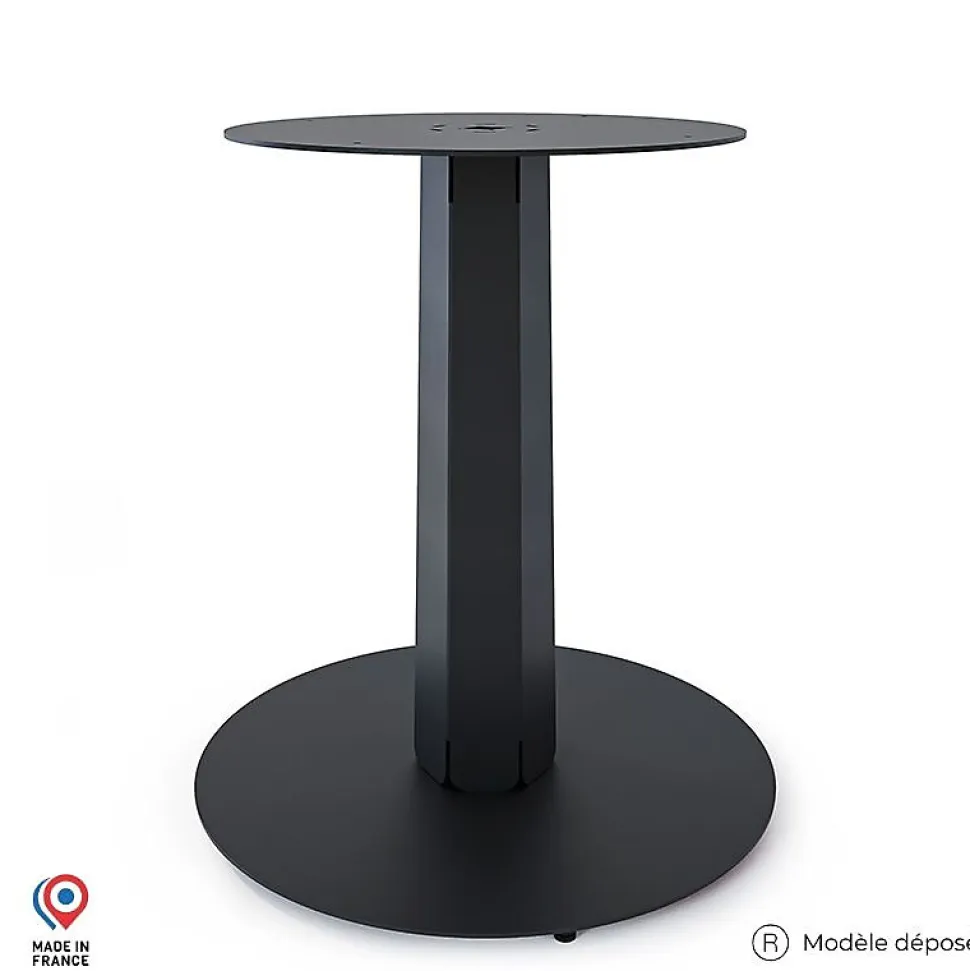 Le pied central pour table haute en acier ZIRCON, un design esthétique et original !Le pied de table haute en acier Zircon est parfait pour créer une belle table ronde au design original.Il mesure 71 cm de hauteur et peut recevoir un plateau à visser jusqu’à 120 cm de diamètre.Zircon est doté d’un vérin de réglage qui vous permettra d’ajuster la hauteur de votre table.Fabriqué en France dans notre atelier, le pied central pour table haute en acier Zircon est disponibles en 7 coloris afin de s’adapter à toutes vos envies décoratives.Les peintures en poudre recouvrant le pied de table haute en acier Zircon sont par ailleurs thermodurcissables, mais également sans solvant. Elles offrent ainsi une belle finition tout en assurant au pied de table Zircon une excellente protection contre la corrosion et anti U.V. Recyclable à 100%, le pied de table haute en acier Zircon bénéficie d’une finition époxy pour une qualité supérieure et une utilisation polyvalente en intérieur et en extérieur.Comment bien choisir son plateau ?Epaisseur recommandée du plateau : 2,5 cm à 4 cm.Diamètre maximal du plateau : 120 cm pour table à manger.Poids max. pour une table suivant recommandations ci-dessus (charge statique) : 100 kg pour table à manger.Ne pas utiliser de verre ou de matériau cassant.Il mesure Ø64 cm à la base, 14,3 cm d’épaisseur à mi hauteur et Ø50 cm au support plateau.