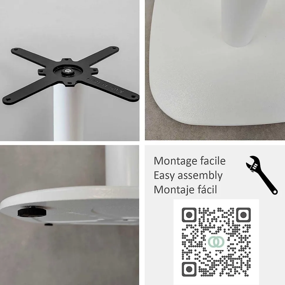 • Pied de table hauteur 73cm idéal pour tables rectangulaires•Pour utilisation professionnelle intensive en intérieur• Fonte thermolaquée – blancBase 60x42cm, colonne Ø7.6cm, poids 19kg• Recommandé pour des plateaux max 120x80cm• Tampons de réglage pour sols irréguliers• Montage très facile• Fabriqué en Italie• Cet article existe aussi en noir• Cet article existe aussi en d’autres dimensions: pour tables standard carrées et rondes, et pour tables hautes (mange-debout).