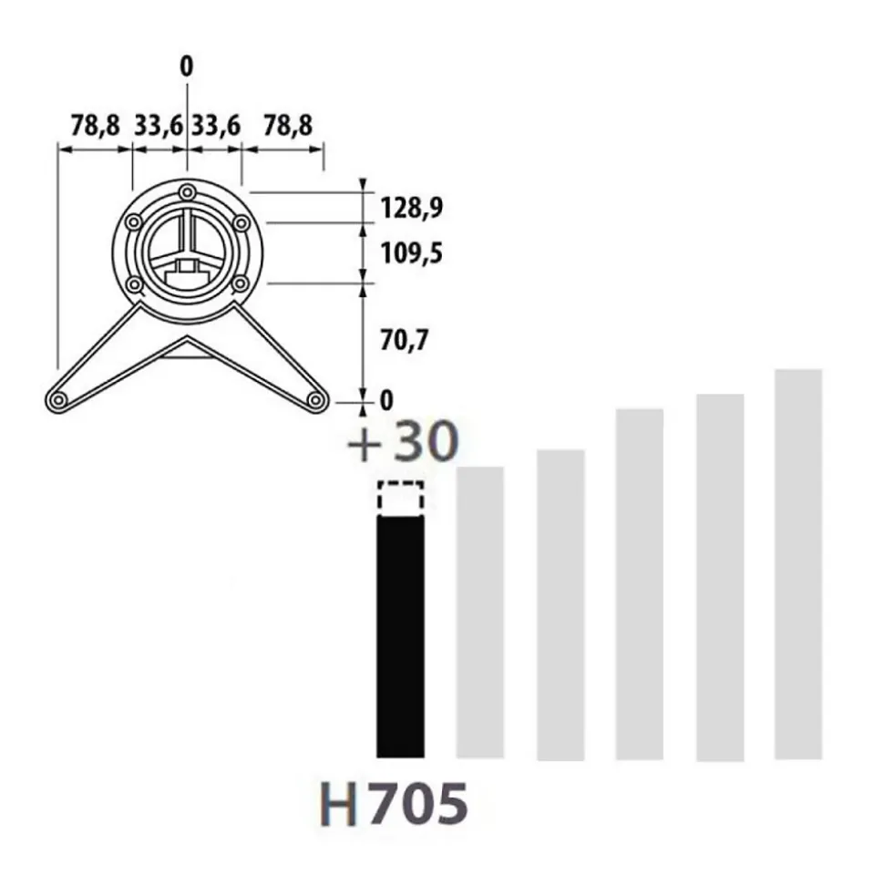 <p•• Pied de table métal : acier •• Pied de table réglable 0/+3 cm •• Table hauteur 70,5 cm •• Fixation par vis, poids supporté : 125 kg