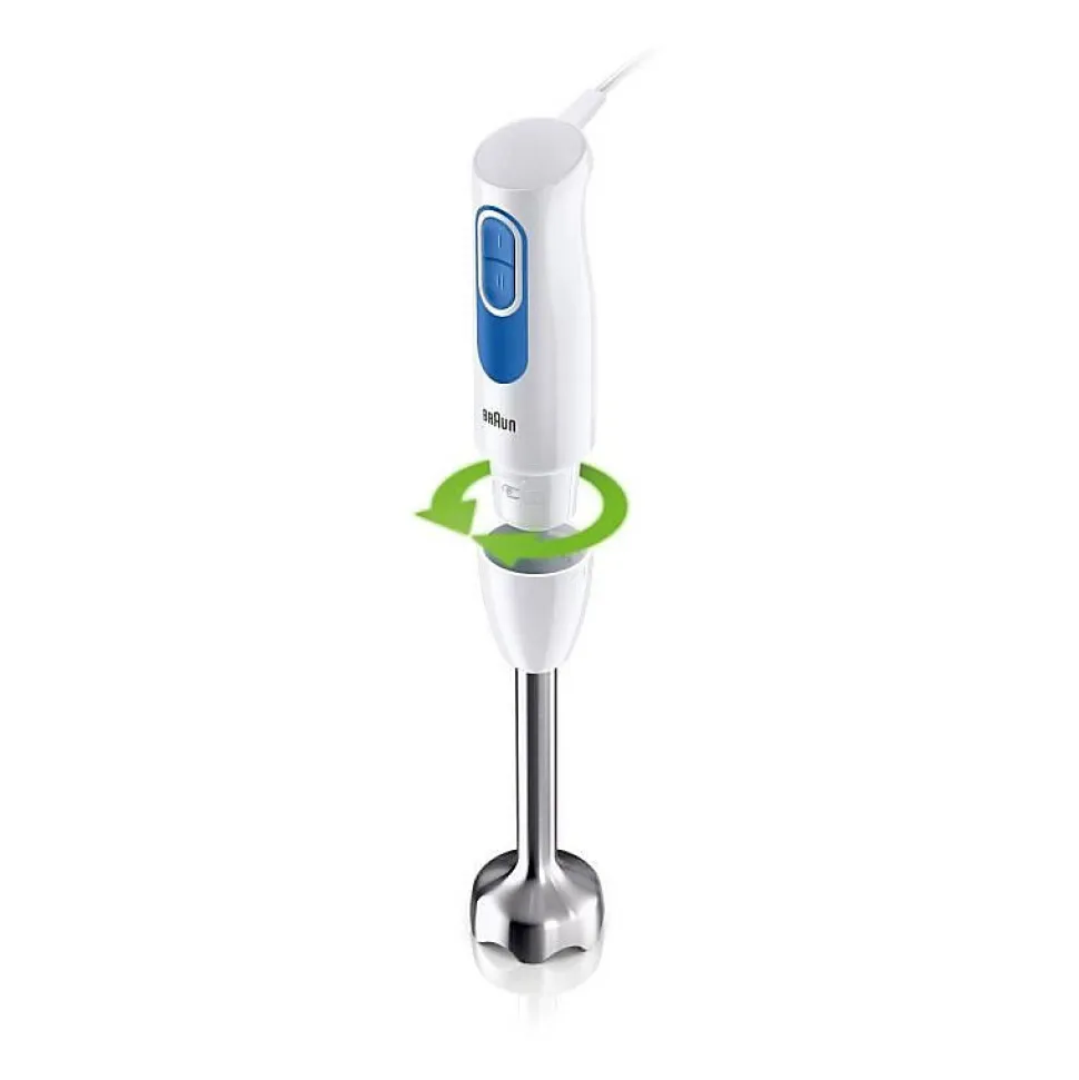 Le pied mixeur MQ20.001M de la marque BRAUN est doté d’un moteur puissant de 600 W et de 2 vitesses. Son systeme EasyTwist permet de changer ou retirer les accessoires facilement et rapidement. Il est lavable au lave-vaisselle et les pieces en contact avec les aliments sont sans BPA. Livré avec un manuel d’instructions pour plus de détails. Couleur principale : blanc.