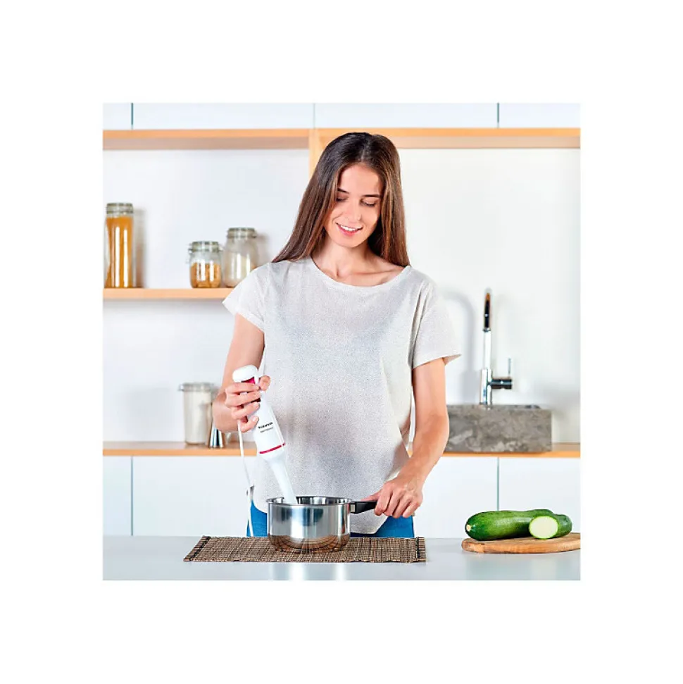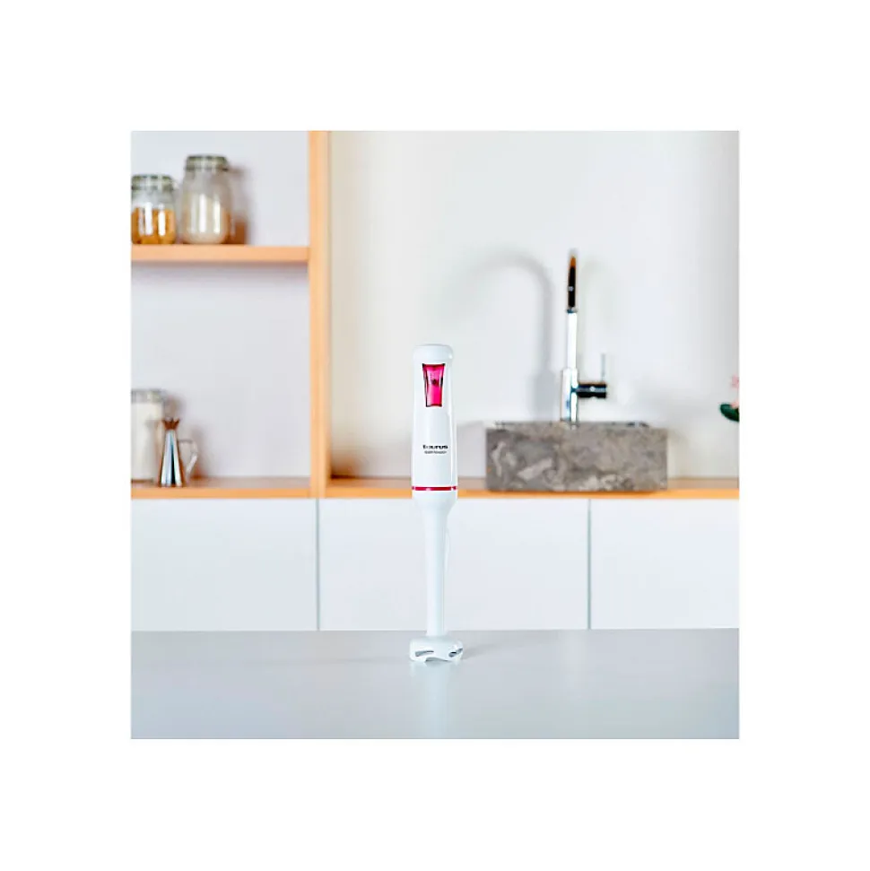 Le pied mixeur Taurus Robot 750 Easy allie performance et polyvalence grâce à 750W de puissance, lames en acier inoxydable haute performance et système Turbo Rotation pour un mixage homogène. Son design ergonomique et compact avec cloche anti-éclaboussures facilite l’utilisation et entretien. Fabriqué en matériaux sans BPA, il est compatible lave-vaisselle pour une hygiène optimale.