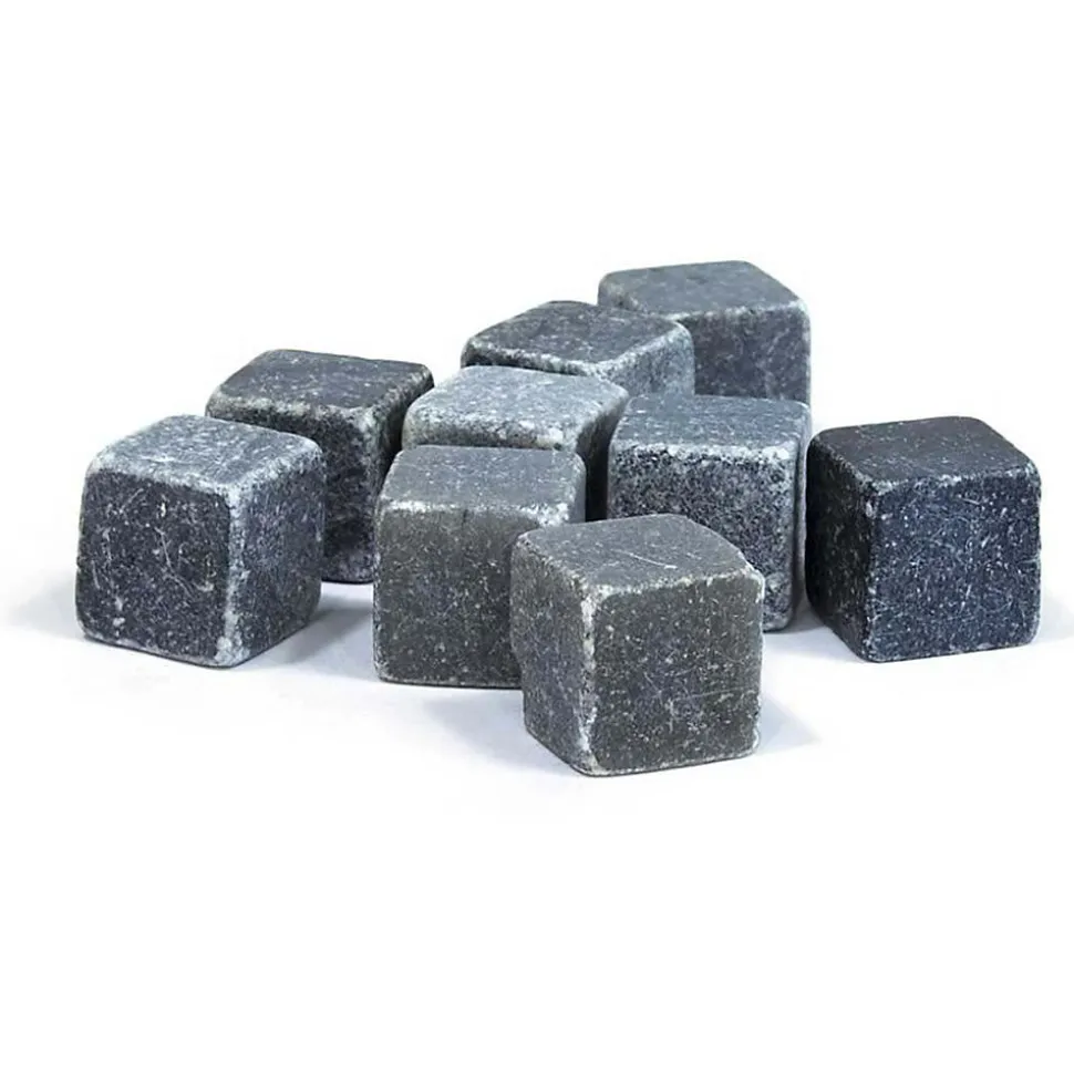 Aspect : Matériau principal = Pierre • Dimensions : Hauteur (en cm) = 2,00 • Longueur (en cm) = 2,00 • Profondeur (en cm) = 2,00 • Autres caractéristiques : Composition = 9 pierres à whisky 1 filet de rangement • Informations complémentaires = Permet de rafraichir les boissons sans les diluer • Poids (en kg) = 0,02 • Pierres à whisky avec filet de rangement