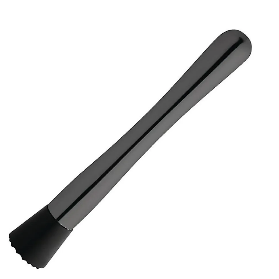 Pilon inox plaqué titane bout en silicone 212 mm Pilon gris titane, 212(L) x 34(Ø) mm, simple mais léger avec un bout en silicone, pour un broyage optimal, spécialement conçu pour tout écraser, des fruits, des herbes et autres ingrédients. En métal il est une alternative plus hygiénique et pratique aux pilons traditionnels en bois pour vos préparations de mojito ou tout autre cocktail.