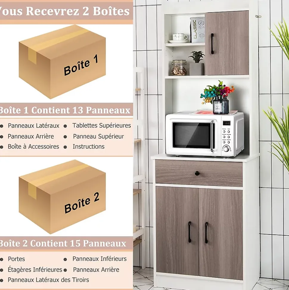 Couleur :Noir + Bois Dur / Blanc + Bois DurMatière : PB+ MDFDimension totale : 60 X 40x 180 cm (LxIx H)Capacite de poids de chaque etagere superieure: 10 kgCapacite de poids du comptoir : 50 kgCapacite de poids du tiroir:5 kgCapacite de poids de la tablette du bas reglable : 20 kgCapacite de poids de I’etagere du bas : 30 kgPoids net:37 kg