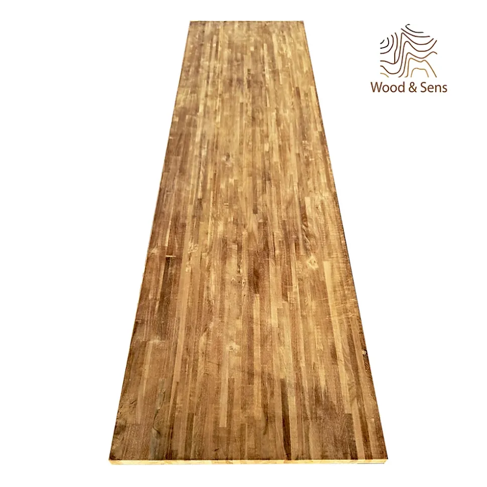 - Conseils de poseLe bois massif, étant un matériau vivant, peut légèrement bouger selon les conditions environnementales. Voici quelques conseils pour assurer une pose stable et durable :Préparation : Vérifiez que les meubles supports soient droits et laissez un espace de dilatation de 5 mm entre le panneau et les surfaces fixes.Fixation : Fixez solidement le panneau avec des équerres et vis tous les 20 cm.Espacement pour appareils : Prévoyez un espace de 25 mm minimum entre le panneau et les appareils tels que lave-vaisselle ou four pour éviter l’accumulation de chaleur et l’humidité sous le panneau.Protection pour les éléments encastrés : Si vous installez un évier encastré ou des plaques de cuisson, veillez à bien étanchéifier les joints en utilisant un silicone de qualité pour empêcher l’eau de pénétrer dans le bois.