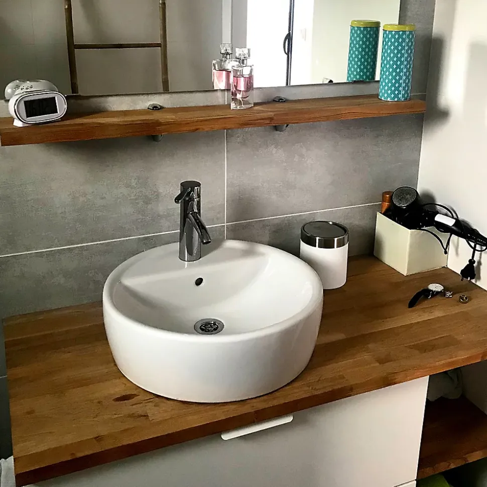 - Conseils d’entretien Certains plans de travail de notre gamme sont pré-huilés. Cependant, pour conserver l’aspect naturel et la durabilité du bois, il est essentiel de le traiter avec une huile adaptée :Protection : Avant la première utilisation, appliquez généreusement de l’huile de lin ou une huile spéciale panneau bois sur toutes les faces et les bords. Cette première application aide à protéger le bois contre les projections d’eau et de tâches, ainsi qu’à nourrir le bois pour augmenter sa stabilité face aux variations de température.Entretien régulier : Les premières semaines d’utilisation nécessitent un entretien attentif pour éviter les taches. Essuyez rapidement toute éclaboussure d’eau avec un chiffon doux. Pour une protection optimale, renouvelez l’application d’huile dans la semaine suivant l’installation. Par la suite, appliquez une couche d’huile 3 à 4 fois la première année, puis 1 à 2 fois par an suffisent.Réparation : En cas de taches ou de rayures, poncez légèrement avec un papier de verre fin ou une ponceuse. Appliquez de nouveau une couche d’huile pour restaurer l’aspect d’origine du panneau.
