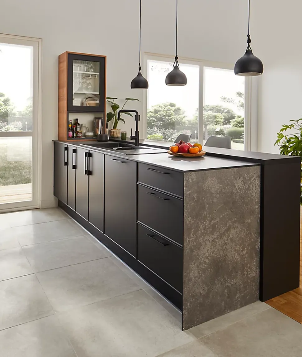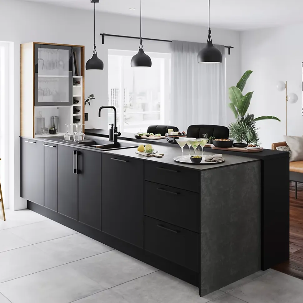 Nos plans de travail GoodHome sont conçus pour être fonctionnels et faciles à entretenir. Il existe un large éventail d’options, permettant de l’adapter à votre style, pour rappeler les portes et accessoires GoodHome. Vous pouvez ainsi créer un espace à votre image.