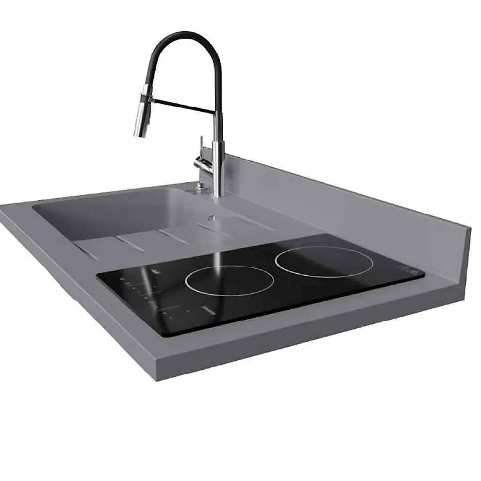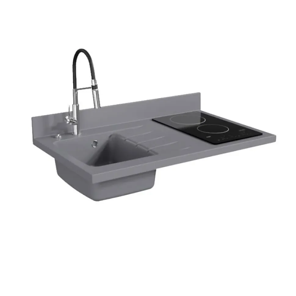 Plan de travail monobloc PlaniQuartz avec évier - 100 cm - Cromo - évier à gauche - Plaque de cuisson Vitrocéramique