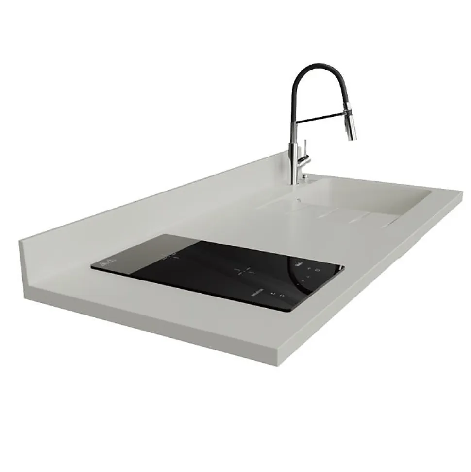 Plan de travail monobloc PlaniQuartz avec évier – 140 cm – Snova – évier à droite – Plaque de cuisson Induction
