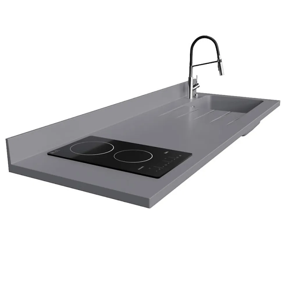 Plan de travail monobloc PlaniQuartz avec évier – 180 cm – Cromo – évier à droite – Plaque de cuisson Vitrocéramique