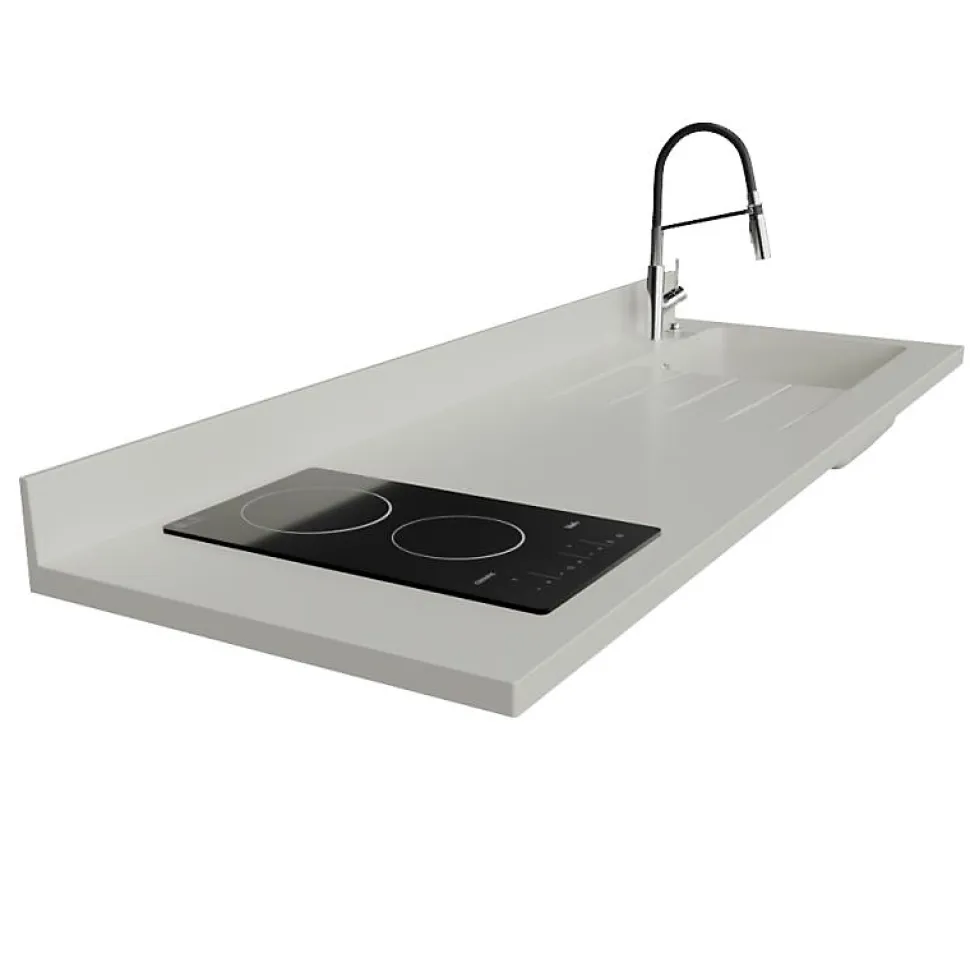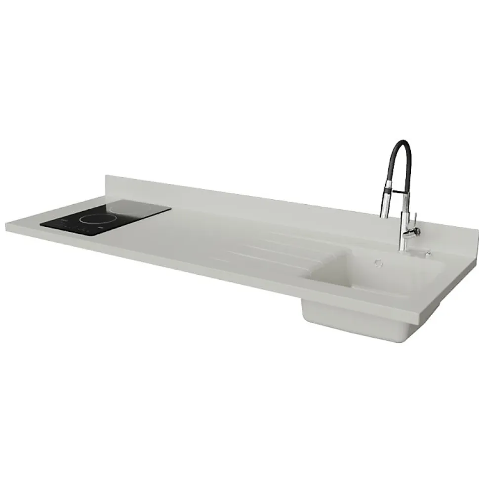 Plan de travail monobloc PlaniQuartz avec évier - 180 cm - Snova - évier à droite - Plaque de cuisson Vitrocéramique