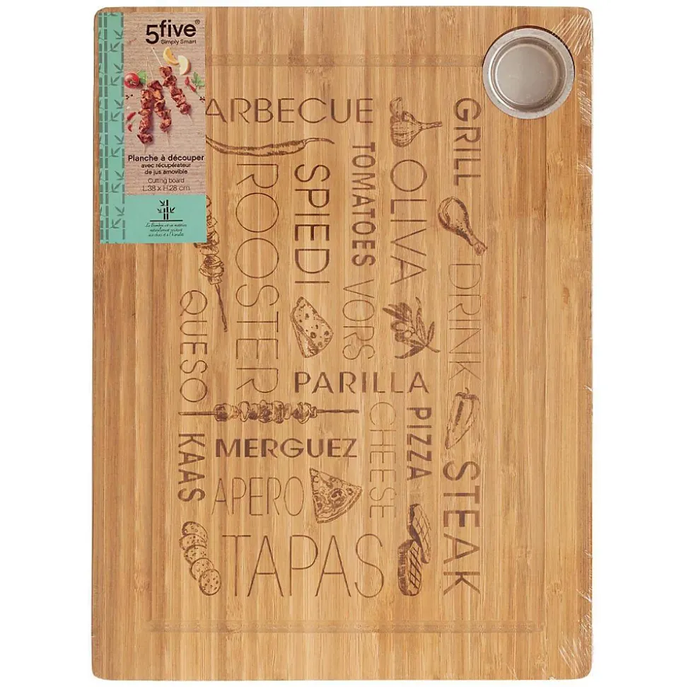 Dimensions : L. 38 x P. 28.00 cmPoids : 1,39 kgMatière de la structure : BambouMatière des éléments : AcierInclus : Rigole récupératrice de jus