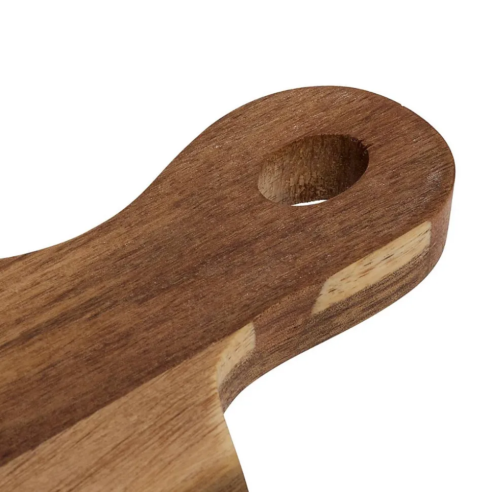 Alliant l’authenticité du bois brut et un design fonctionnel, cette planche à découper en acacia devient un indispensable de votre cuisine. Préparez vos repas quotidiens ou présentez vos plus beaux apéritifs avec élégance. Conçue entièrement en acacia, un bois réputé pour sa solidité, cette planche de la collection Acacia Cuisine par 5 Five Simply Smart apporte une touche chaleureuse et naturelle à votre plan de travail. Sa forme douce et son manche pratique en font un objet aussi beau qu’utile, qui trouvera sa place suspendu dans votre cuisine ou simplement posé comme élément de décoration. Description Matière : 100% acacia Manche ergonomique avec trou pour faciliter la suspension et le rangement Design aux lignes organiques pour une présentation soignée Dimensions L 35 x l 20 x H 1,5 cm Qualité Ce produit est garanti 2 ans.