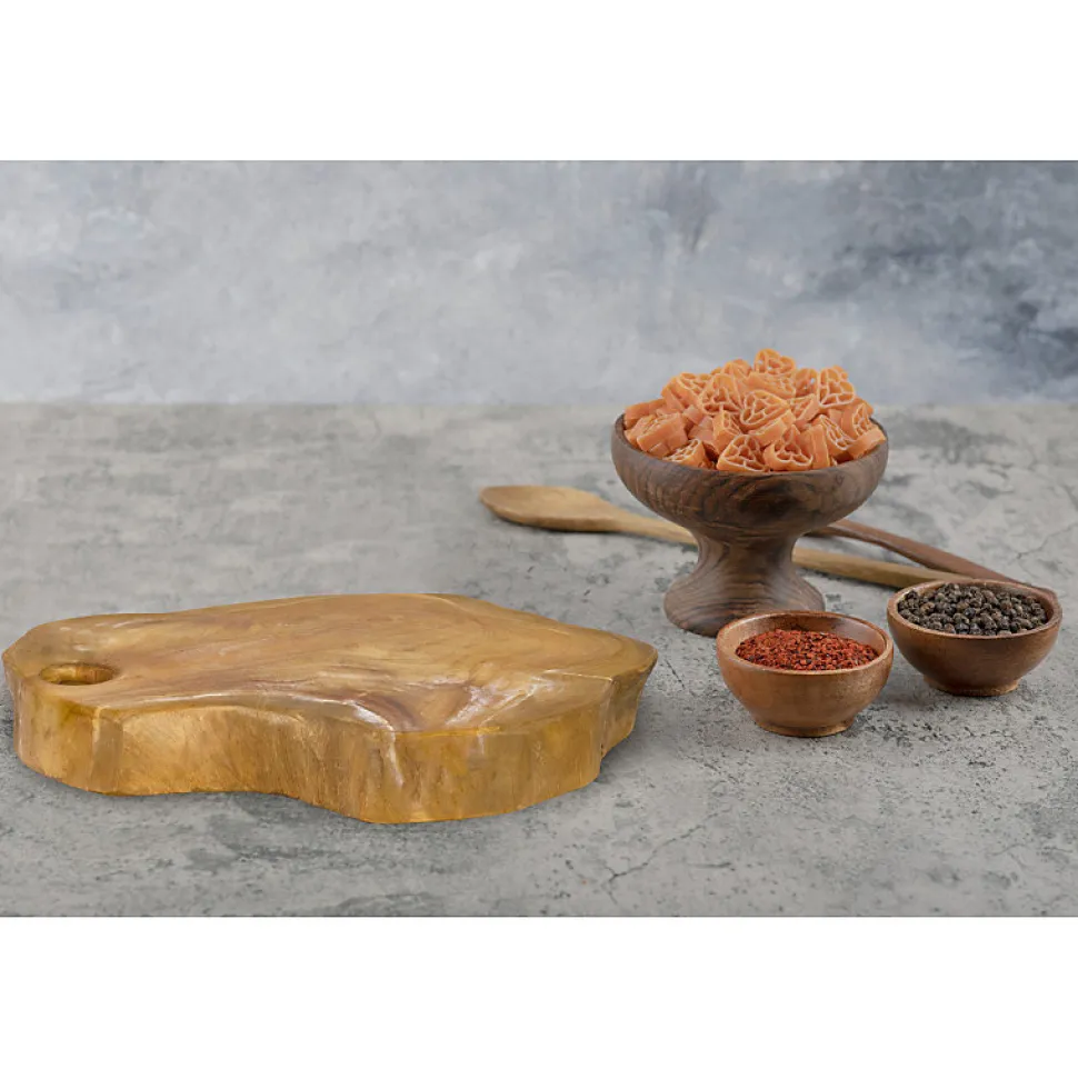 Craquez pour la planche à découper artisanale L.30 cm en bois de teck naturel PLANK. Cette planche en bois de teck, méticuleusement façonnée, polie et traitée avec de l’huile minérale alimentaire, incarne la splendeur naturelle et l’authenticité rustique du bois. Pour préserver sa qualité, il est conseillé de la nettoyer à la main après chaque utilisation, ce qui permet de maintenir son éclat et sa durabilité. Chaque pièce est unique, arborant des formes originales qui reflètent le caractère artisanal de sa fabrication. En plus de sa fonction première en tant que planche à découper, elle se transforme aisément en un élégant présentoir ou en un objet décoratif. Son utilisation est un véritable terrain d’exploration où votre créativité peut s’épanouir et où les possibilités d’usage sont infinies. Caractéristiques : PRODUIT : Planche à découper artisanale L.30 cm en bois de teck naturel PLANK. COULEUR : Bois. COMPOSITION : Bois de teck. DÉTAILS SUR LE TECK : Il s’agit d’un bois exotique précieux, résistant et imputrescible. Son grain est serré et fin. La couleur du bois varie de jaune pâle à bronze ou beige rougeâtre au veinage sombre. Une caractéristique unique fait que le teck ne provoque pas de corrosion ni d’oxydation du métal à son contact. DIMENSIONS GÉNÉRALES APPROXIMATIVES : Longueur +/- 30 cm x Hauteur +/- 3,8 cm x Profondeur +/- 28 cm. ENTRETIEN : Ne pas utiliser de produits ou accessoires abrasifs. Il est déconseillé de la laver au lave vaisselle. ATTENTION : En raison du caractère artisanal et unique, la couleur et l’aspect du bois peuvent varier par rapport au produit présenté sur la photo. NOMBRE DE COLIS : 1. MONTAGE : Sans montage.