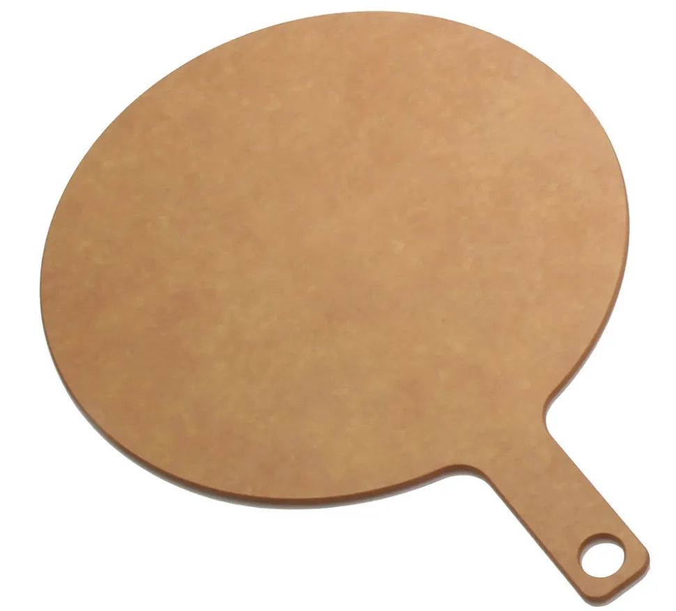 Planche à découper Ultra résistante, durable, légère et avec un design sobre et travaillé, cette planche à fibre de bois avec manche est un modèle polyvalent qui conviendra à la cuisine comme au service à table. CARACTÉRISTIQUES TECHNIQUES • Dimensions extérieures : Diam.30cm, épaisseur 6mm • Matière : Fibre de bois • Coloris : Bois POUR QUELLES UTILISATIONS • Notre planche à découper en fibre de bois avec manche peut être utilisée comme planche de service pour pizza, fromage, ou tapas LES AVANTAGES DU PRODUIT • Bois issu de forêts gérées durablement • Hygiénique et facile d’entretien • N’émousse pas les couteaux • Compatible au lave-vaisselle • Certifiée >