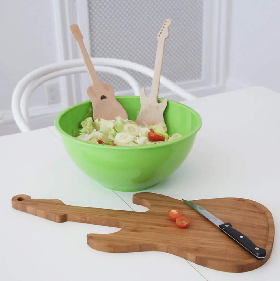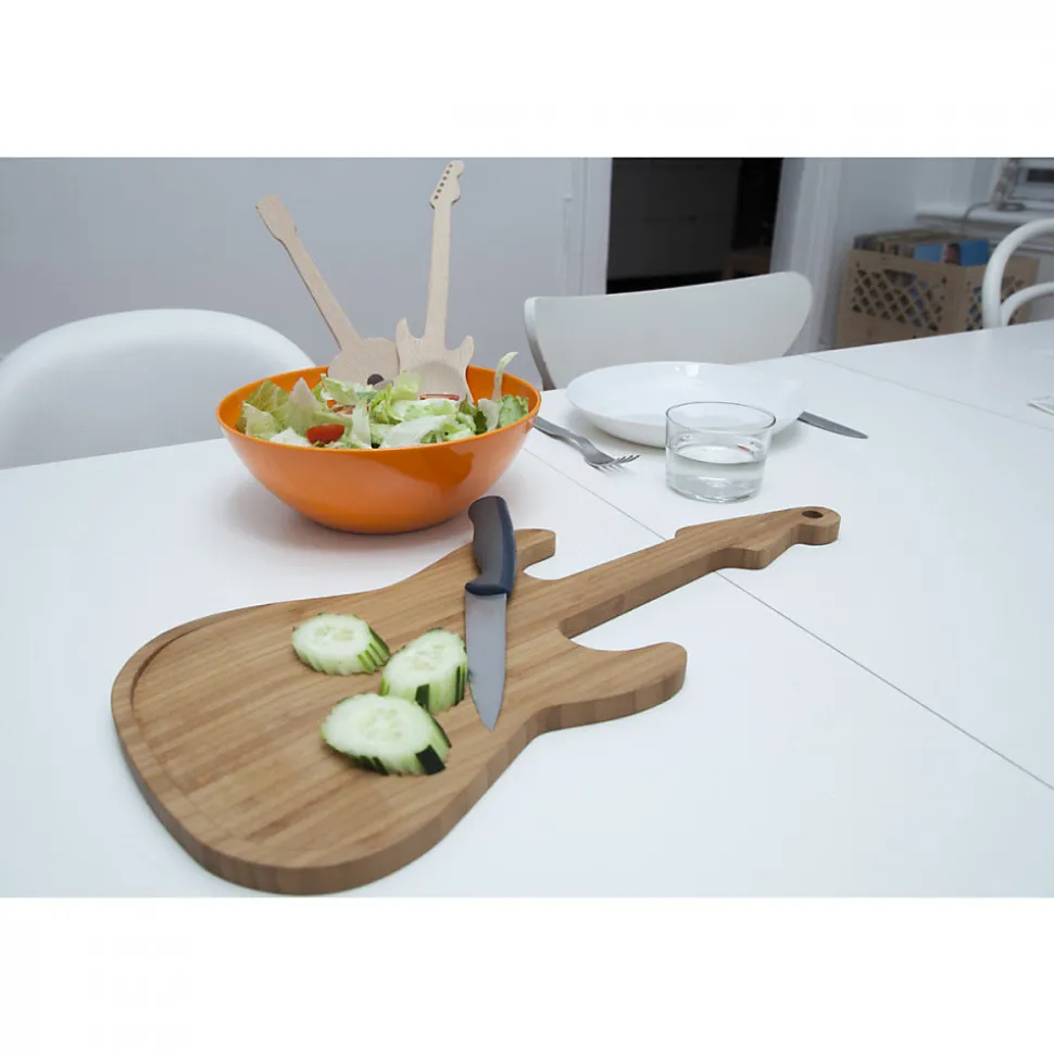 Vous considérez-vous comme un musicien culinaire ? Votre nourriture incite-t-elle les gens à chanter vos louanges ? Pour cela, vous devez avoir cette solide planche à découper guitare en bambou dans vos instruments de cuisine. La manche de la guitare est pratique pour porter et servir. Dimensions : 1.5 x 22 x 49 cm Matière : Bois
