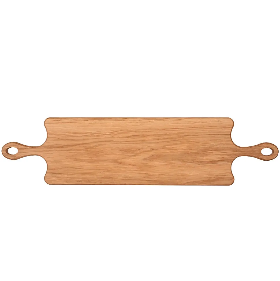 Ces très grandes dimensions et ses deux poignées font de cette planche en chêne un incontournable, fonctionnel pratique et durable avec le charme du bois naturel.Lavage à la main avec de l’ eau chaude et un détergent doux, ne pas tremper, sécher immédiatement. Huilez de temps en temps avec un produit adapté aux aliments.Collection : Planches Matière : Bois Couleur : Marron Longueur : 62.00 cm Largeur : 15.00 cm Hauteur : 2.00 cm