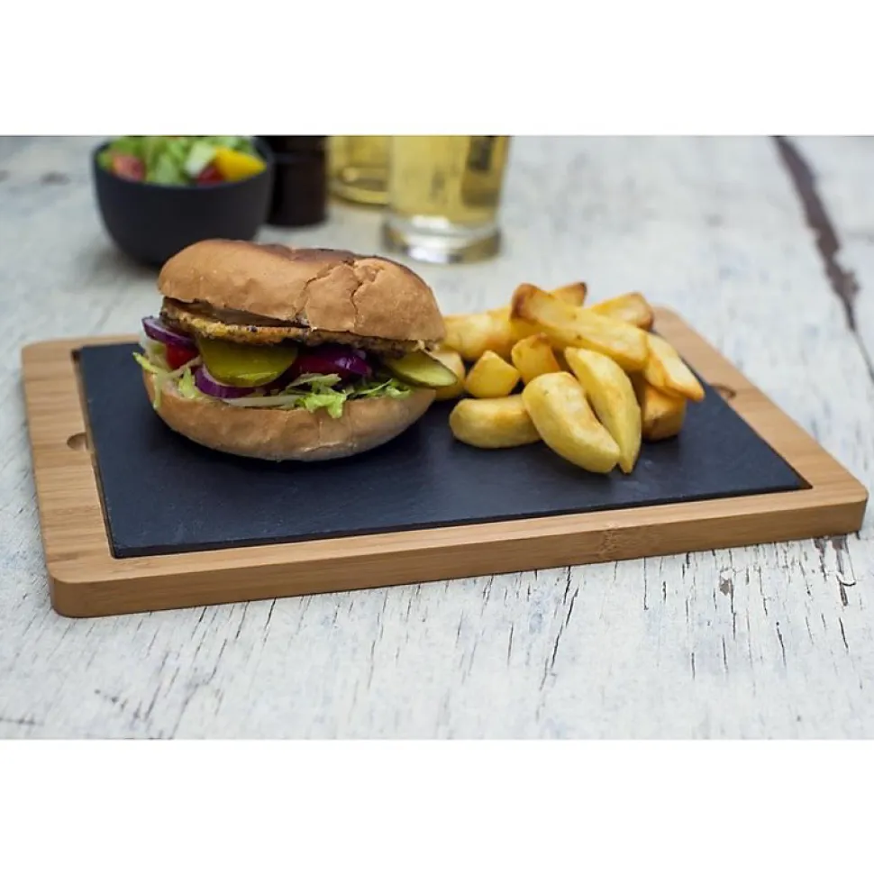 Planche support en bois aux dimensions de 330 x 210 x 15 mm – OlympiaPlanche support en bambou conçue pour accueillir un plat en ardoise (référence : CM063).Les poignées permettent de faciliter le débarrassage.Cette planche solide offre un moyen pratique et élégant de présenter des plats principaux ou les plateaux à partager.La légèreté du bambou contraste joliment avec la couleur de l’ardoise (vendue séparément).Entre les utilisations, vous pouvez simplement l’essuyer avec un chiffon propre et humide et la sécher. Marque: Olympia.Dimensions: 15(H) x 330(L) x 210(P)mmEncoches pour les doigts pour faciliter le retrait de l’ardoise (vendue séparément)
