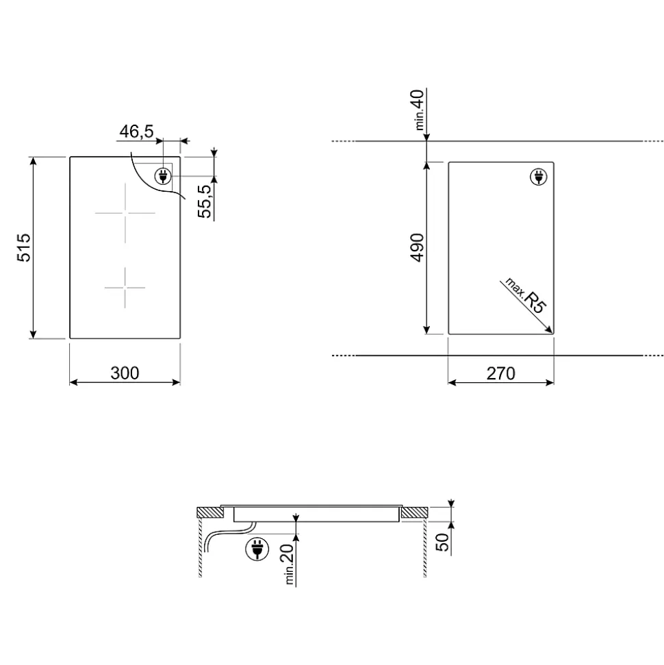 Plaque de cuisson à induction 2 foyers Universel L. 30 cm SI5322B Smeg noir