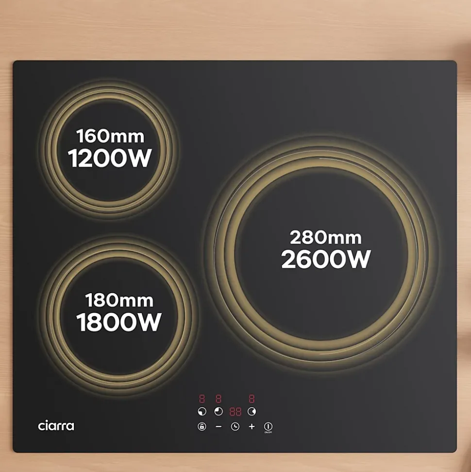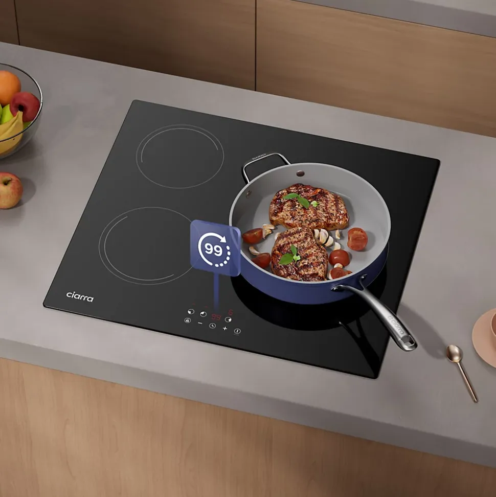 - Verre microcristallin de haute qualité – Surface durable, résistante aux rayures et facile à nettoyer.