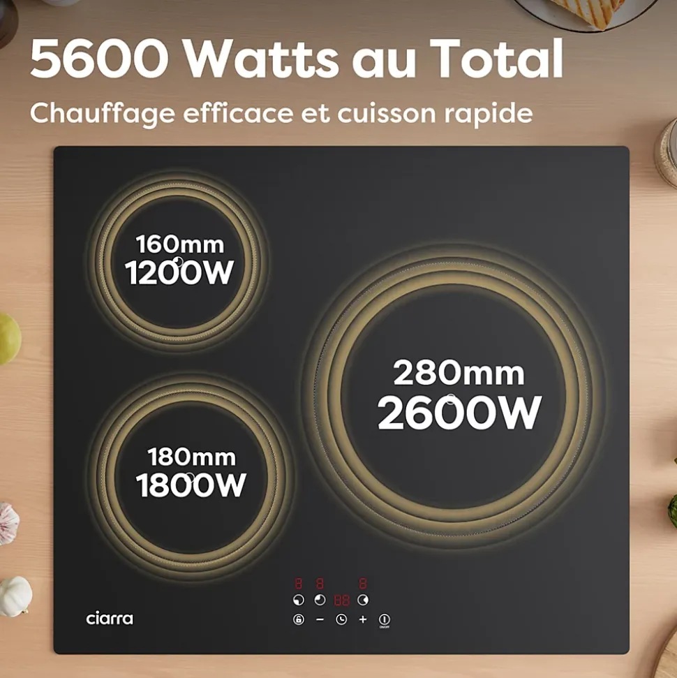 - Puissance totale 5600W : Optimisée pour une cuisson rapide et homogène.