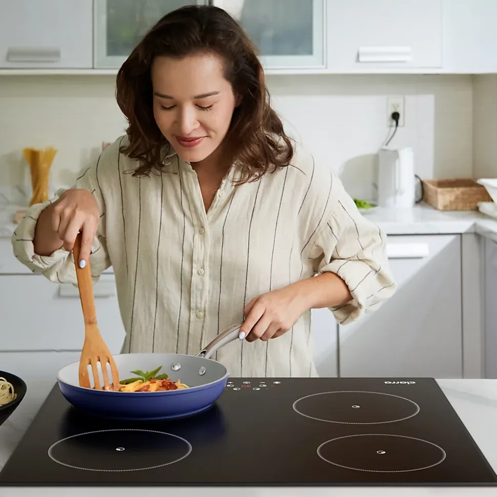 Modèles: CD4BIH-FType : Plaque à induction encastrablePaneau: Panneau givré légèrement brillantNombre de foyer:4 feuxNiveaux de Puissance: 9Puissance totale: 6000 WattBooster: NonCommande: Touche Sensitive avec Affichage DigitalPrise:San priseAlimentation : 220-240V ~ 50-60HzDimensions (LxPxH) : 59 x 52 x 6.2 cmDimensions d’encastrement : 56 x 49 x 8 cmPuissance et diamètre des zones :Zone Avant Gauche/Zone Arrière Droite: 180mm,1800w (Diamètre du fond des casseroles:140-260mm)Zone Arrière Gauche/Zone Arrière Droite: 160mm,1200w (Diamètre du fond des casseroles:120-200mm)Fonctions :Minuterie individuelle pour chaque foyer (jusqu’à 99 minutes)Verrouillage enfantIndicateur de chaleur résiduelle (« H »)