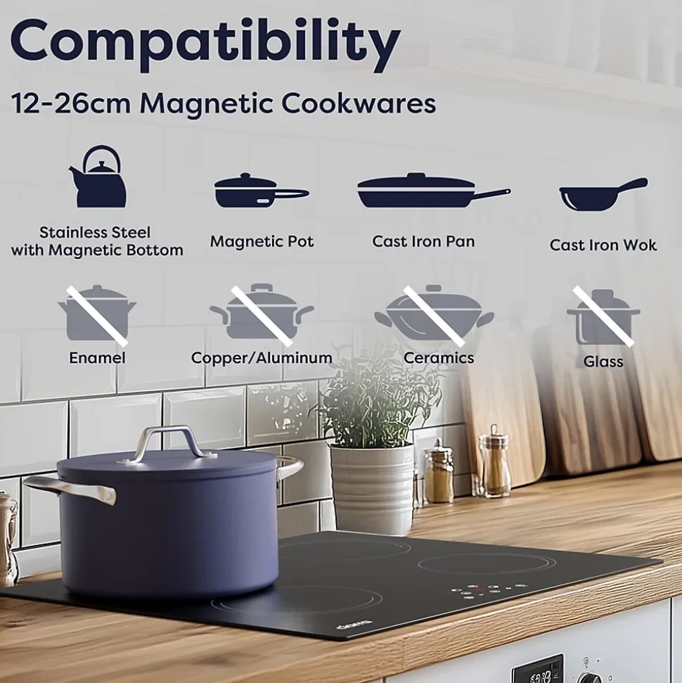 - Design encastré – Cette plaque à induction s’intègre parfaitement dans votre plan de travail, offrant une solution esthétique et moderne.
