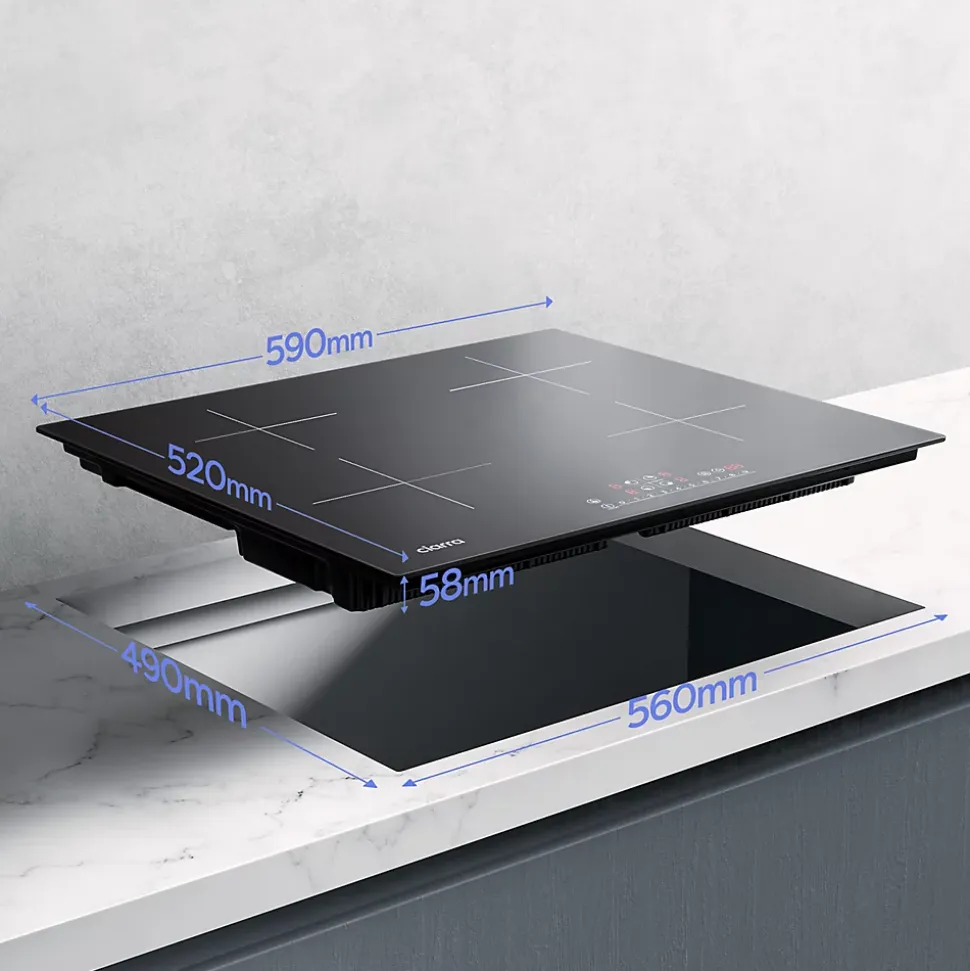 CIARRA CD4BBIH Table de cuisson induction – 4 Foyers à grande capacité, opération facile par les Commandes sensitives & Slider.9 Niveaux de puissance – 7200W au total, convient aux différents aliments et méthodes de cuisson.Booster individuel sur chaque zone – permet de chauffer une zone à puissance plus grande pour une durée de 5 minutes.Haute Efficacité d’énergie – Les casseroles contactent directement dans la zone de cuisson vitrocéramiqu, rendant une éfficacité d’énergie max jusqu’à 90%, réduisent les pertes de chaleurs pendant la cuisson.Grande facilité d’utilisation – S’adaptent aux différentes tailles de ustensiles de cuisine, qui vous permettent de préparer plusieurs plats en même temps, un vrai atout pour la famille.Utilisation en Sécurités7 Niveaux : Témoins de mise sous tension, Indicateur de chaleur résiduelle, Sécurité enfants, Auto-Stop, Détection des récipients, Système Anti-débordement, Minuteur